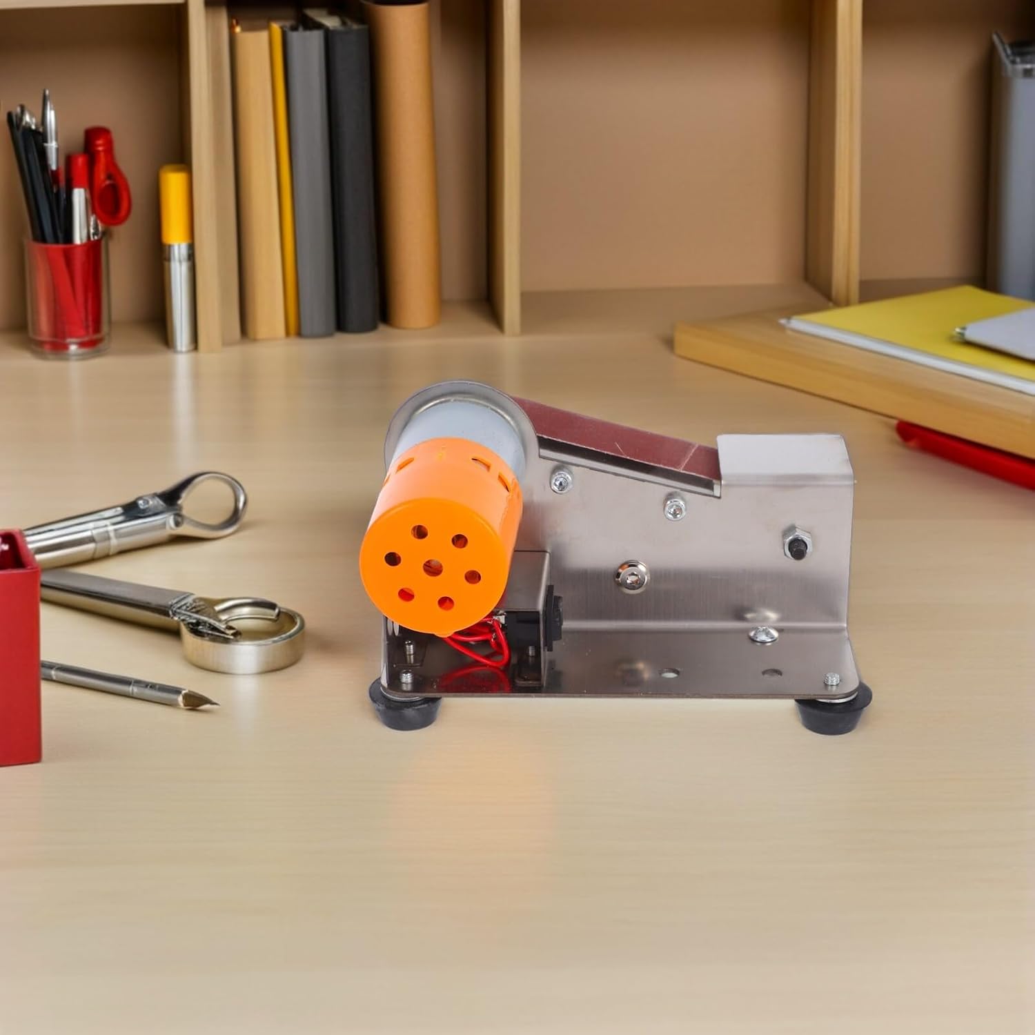 Package List 1 x Grinding and polishing machine 1 x power supply 1 x grinding wheel 1x polishing wheel 20 x belts 3 x adjustment wrench Features -Product Info: Portable Mini Sander -Material:Iron Emery -Durable construction: featuring stainless steel materials and stabilizing rubber feet, the desktop grinder polisher delivers dependable performance for belt grinder wheels and heavyduty sanding belt machine set jobs -Dual directional control: the electric belt sanding machine offers forward/reverse functions, streamlining your workflow for craft sander mini and micro belt sander activities in any DIY or professional setting small electric belt sander -Size:17.00X14.00X10.50cm/6.68X5.50X4.13in -Wide application use: suitable for various materials, including wood, soft metals, leather, and stone, this mini sander for wood offers multipurpose capabilities for hobby tool sander enthusiasts -Enhanced cooling system: with integrated large cooling vents, this mini belt disc sander maintains lower temperatures during use, ideal for portable grinder polisher and small hand sander jobs jewelry polishing machine -Color:SilverGoods Informationbenchtop belt sander The iron frame belt sander is built to last, suitable for portable bench sander applications, DIY projects, craft knife sharpening, and tabletop sanding.edge deburring machine Large ventilation slots boost durability for long sharpening and polishing sessions.mini belt sander for crafts Equipped with grinding belt machine wheels and dual-side polishing discs, the mini belt sander electric model is versatile for deburring, chamfering, and small parts finishing