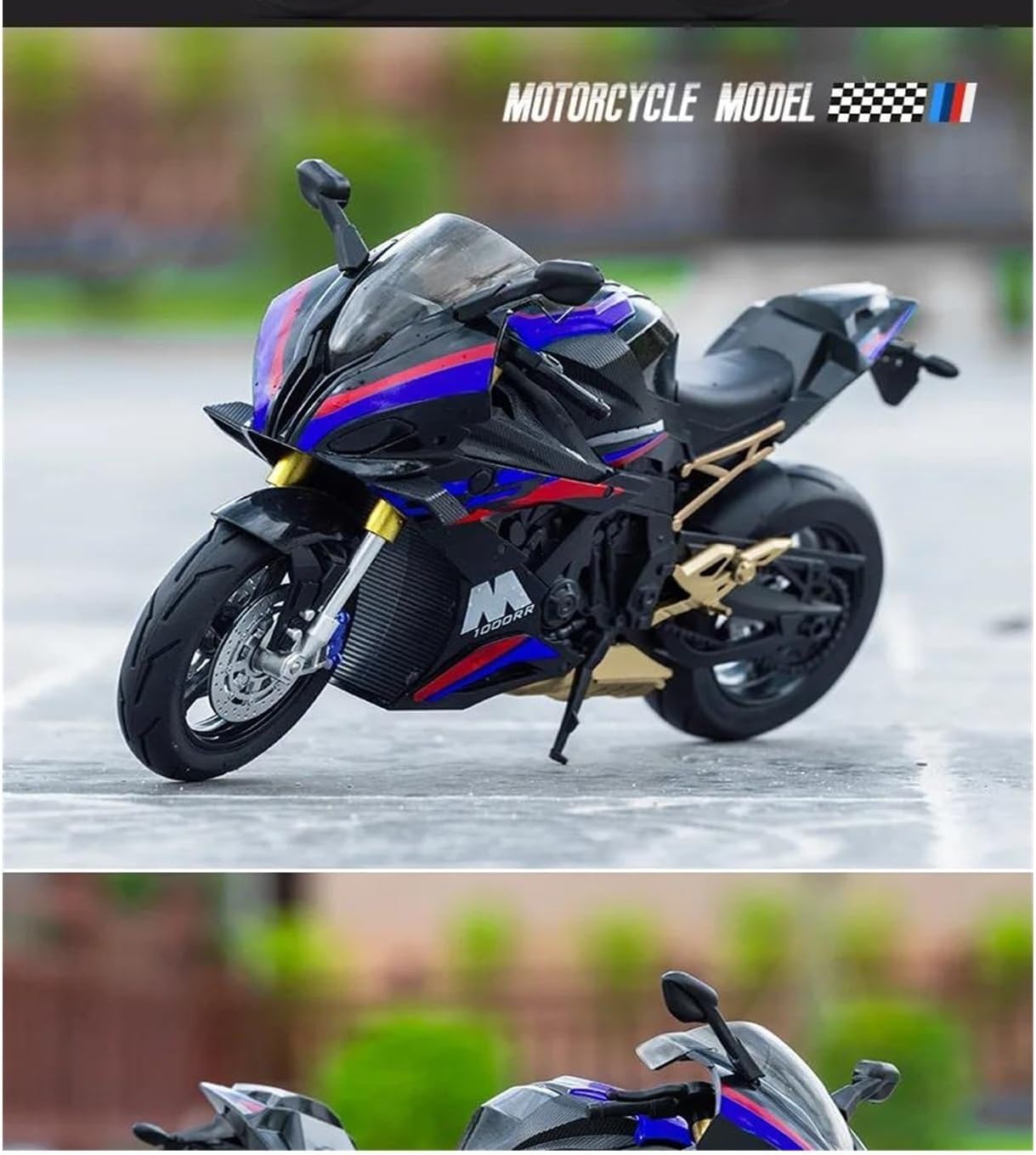 Name: for BMW S1000RRMaterial: Alloy, ABSProportion: 1:10Size: 20.5*8*12cmName: simulation miniature alloy motorcycle model toys, sports racing motorcycle model super off-road cruiser motorcycle vintage iron motorcycle model limited edition static commemorative collection motorcycle model seriesMaterial: alloy + rubber tires + ABS1:Exquisite workmanship2: sturdy and durable3: also far motorcycle of the true proportion of the detailsFunctions: front and rear wheels with shock absorbers/head linkage left and right steering/size kickstand can be put away and put down/press to start the lightsUsage: Parent-child interaction Home office decoration Collection Memorial Christmas Birthday Halloween Thanksgiving Any holiday giftRecommended age:4-6 7-12 18 years old and aboveTips for use:1. Keep away from fire sourceTranslated with DeepL.com (free version)