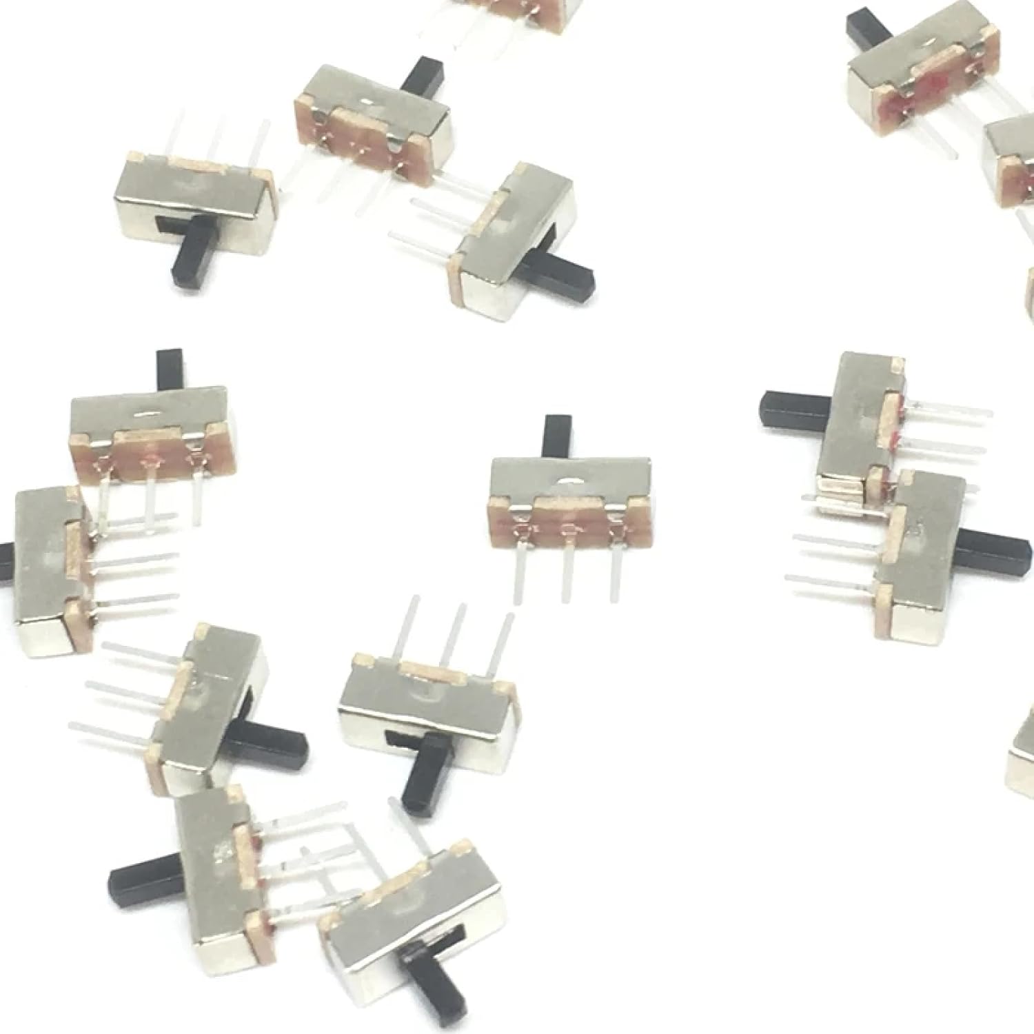 These compact SS12D00 slide switches come in a convenient 10-pack, perfect for various electronic projects and circuit applications. Each switch features a precise 3mm handle length, making them ideal for installations where space is at a premium. The 1P2T (Single Pole Double Throw) design provides reliable 2-position operation, allowing for clear ON-OFF functionality in your circuits. With 3 pins and robust construction, these switches deliver consistent performance and smooth sliding action. The silver-plated contacts ensure excellent conductivity and minimal resistance, while the durable housing protects the internal mechanism. These versatile switches are suitable for numerous applications, from custom electronics to small appliances and hobby projects. The compact form factor combined with dependable operation makes these switches an essential component for electronics enthusiasts and professionals alike. Each switch is engineered to provide clean switching action and maintain its performance over extended use, making them a reliable choice for your switching needs.