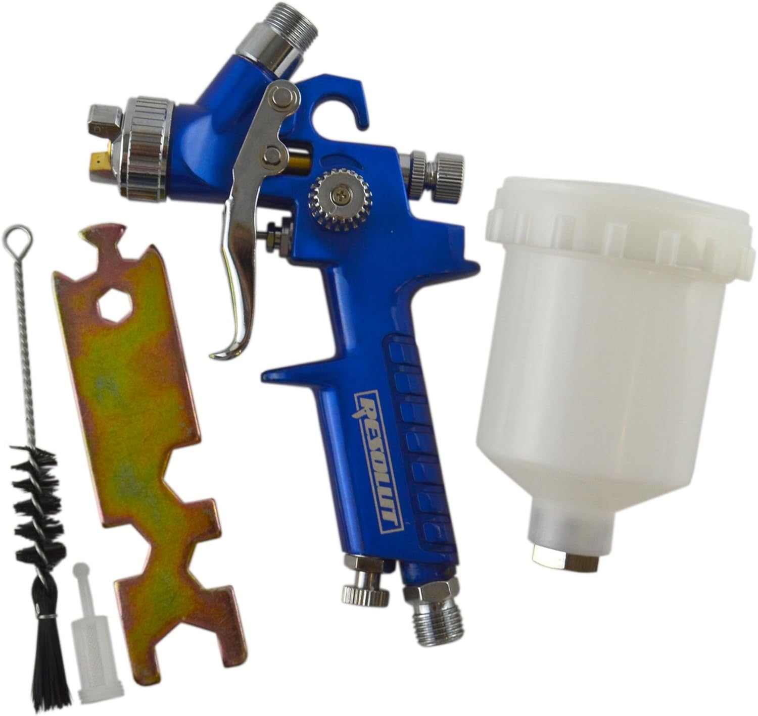 Professional tool for commercial or occasional use Mini HVLP spray gun Designed for touch up use which enables it to be ideal for small areas such as motorbike cowlings etc. HVLP gun which has greater transfer efficiency than suction feed spray guns and reduces over spray, saving on time and material costs Suitable for all types of paint including water based paints Light weight and easy to control Plastic top which keeps the weight down when using this application Gravity fed (which means that there is no wasted paint) SPECIFICATIONS AIR PRESSURE 3 BAR (43 psi) AIR INLET 1/4 inch BSP AIR CONSUMPTION 9CFM CAPACITY OF CUP 125ML FLUID NOZZLE 0.8mm FEED TYPE Gravity Comes with air flow / paint flow and fan adjustment regulators for accurate work Suitable for all paints including modern water based paints Precise air control Consistent spray pattern