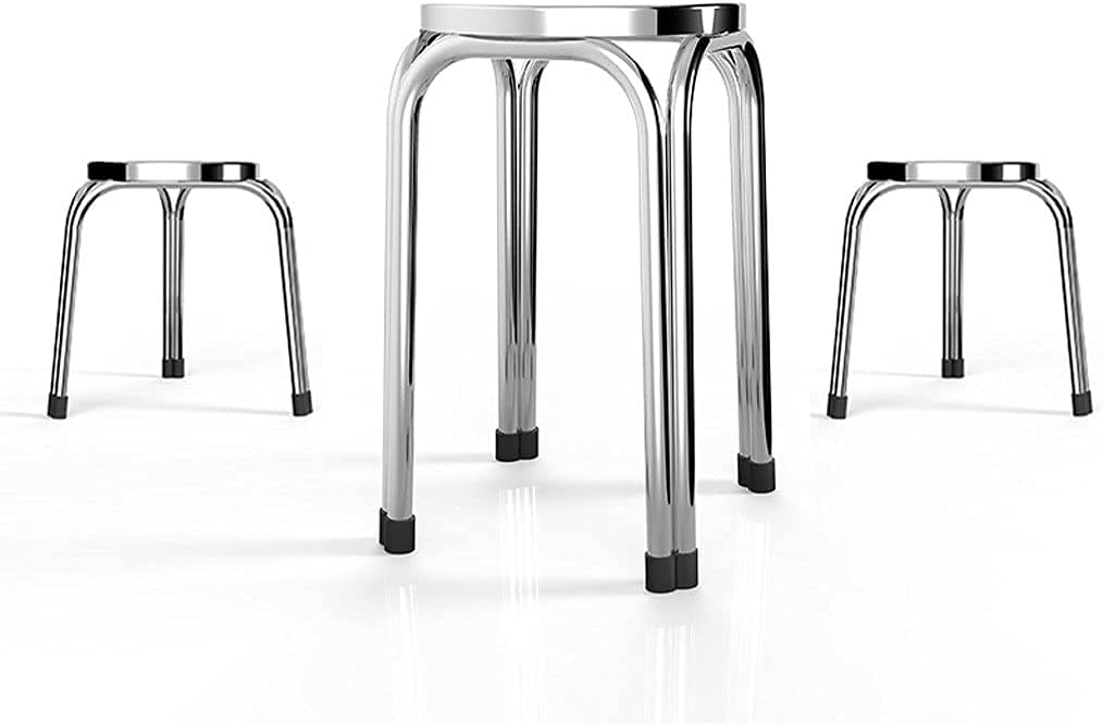 Name: StoolMaterial: MetalMetal Material: Stainless SteelStyle: Simple and ModernColor: SilverApplicable Object: AdultWhether to Assemble: Whole AssemblyDesign Element: MetalStyle Positioning: Artistic StyleSize: Large 47Cmx29Cm/18.5Inx11.4InSmall: 30Cmx29Cm/11.8Inx11.4In