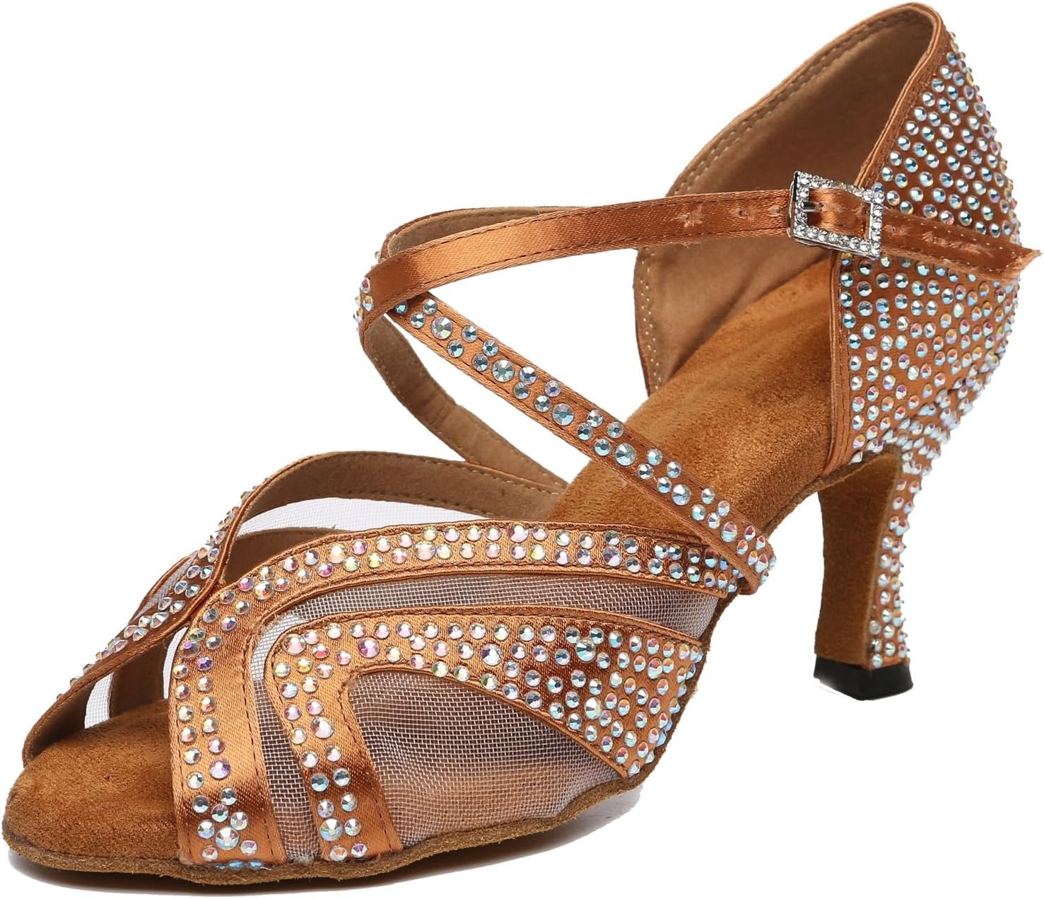 Minishion Women's Latin Salsa Ballroom Dance Shoes Wedding Sandals with Rhinestones