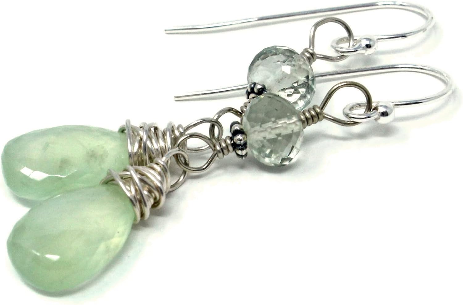 Handmade Prehnite & Prasiolite Earrings, 1.5". Arrive nicely boxed, ready to gift: