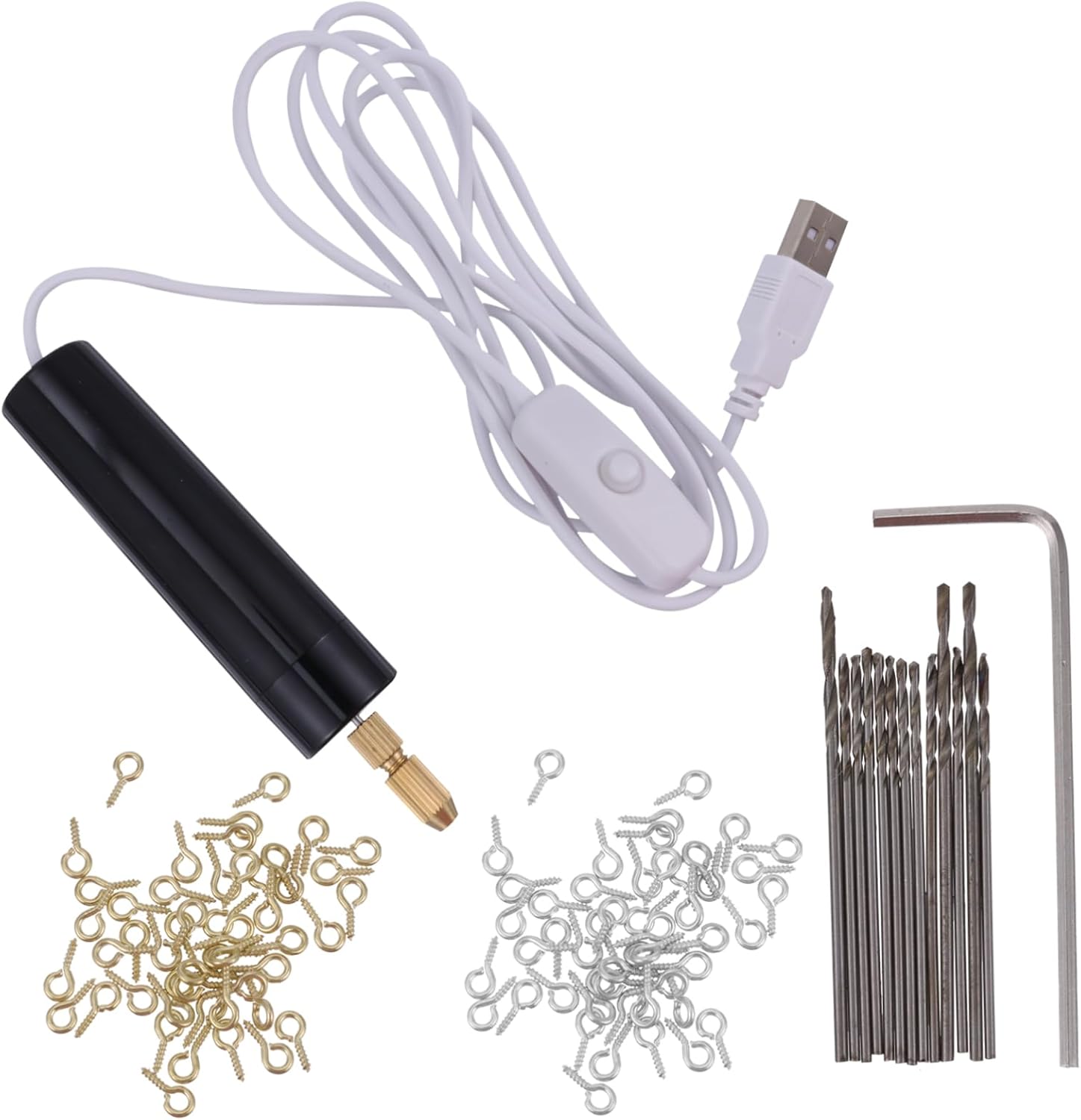 Package Include 3 x small electric drill 30 x drill bits 0.9mm 9 x drill bits 1.1mm 3 x spanner 150 x gold sheep eye nails 150 x eye nails Characteristics - Color: Black Mini Electric Drill. - Material: Steel Cordless Rotary Tools. - Size: 12.00 x 1.40 x 1.40cm/ 4.72 x 0.55 x 0.55 inch Mini Electric Drills. - Can be used to do various of home projects and crafting jobs USB Charging Electric Drill. - You can easily create fun and interesting DIY and handicrafts Electric Drills. - Such as polishing, cleaning, engraving, sharpening, grinding, sanding, nail grooming or lightweight plastic housing projects Woodworking Engraving Pen. - This cordless rotary tool is only suitable for light jobs, cutting is not recommend Portable Electric Drills. - It is suitable for wood, plastic, tile, glass, stone, metals, etc Electric Drill.Goods DescriptionUSB Charging Electric Drill Rotary tool is your creations helper.Cordless Rotary Tool Everything you need to get started on your next jobs.Woodworking Engraving Pen Provide simpler operations for complex and detailed work.Mini Electric Drill Cordless rechargeable rotary tool for all kinds of home projects or crafting jobs.Mini Electric Drills Tackle a wide range of tasks around the home and garage