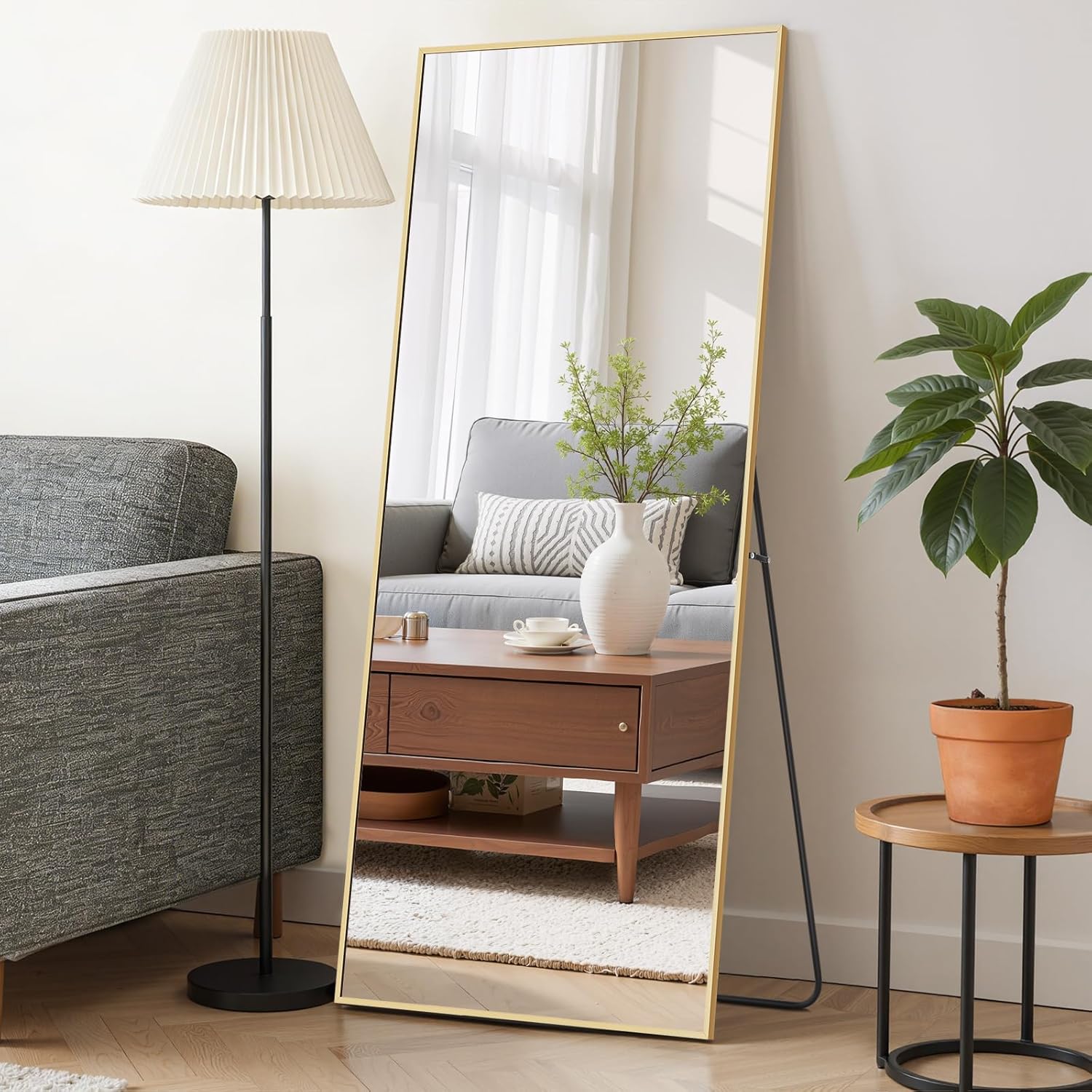 This full-length mirror features a slim metal frame with clean lines and ultra-clear glass, creating a timeless yet modern look that complements bedrooms, living rooms, and dressing areas. Designed for everyday versatility, it can be used as a freestanding floor mirror, mounted on the wall, or leaned securely against it to fit different room layouts and space needs. The durable aluminum alloy frame is waterproof and resistant to wear, offering long-lasting stability and reliability. Crafted with high-definition glass, the mirror delivers clear, distortion-free reflections that accurately capture your full appearance, making it ideal for outfit checks, daily grooming, and enhancing the sense of light and space in your home.