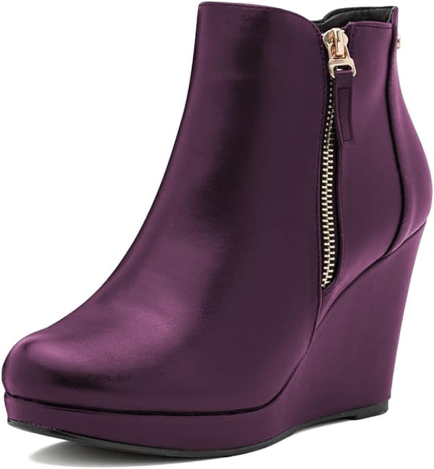------Miss Left------ Based on the market with fashionable design, high-quality materials, rigorous craftsmanship, and a rigorous and efficient service system. Today, as the scale becomes more mature, the new Miss Left will interpret the other side of women's shoes with an independent and novel image. Product Features: - Wide Size Range: 4-16 (M) US. Special foot shape provides with private customization service. - Toe Type: Round/Closed Toe. - Heel Type and Height: Wedge heels. The ideal height is between 3.1-3.9 inches, which gives your ankle the proper amount of support and the right fit. It also exudes sophistication and style. It is sized accurately. However, if your feet are WIDE or THICK, please select a size higher. - Shoe Type: Women's vintage double side zippers ankle boots for daily formal office business offers an attractive look. Elegant styles with anti-skip, rubber outsoles, and padded insoles produced with handmade craftsmanship ensure comfort through prolonged wear. - Outfits Recommended: A-line miniskirts, flared jeans, dresses, skirts, and shorts all go well with this. The footwear is a definite way to complete any ensemble. They are a crucial component of your stunning shoe collection. - Warm Note: Please understand the shoe color may be a little different between the actual product and the product picture due to the effect of the light and monitor resolution setting.