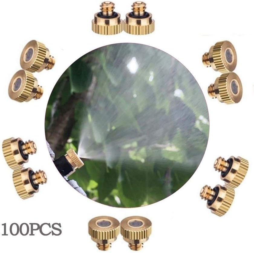 Description: The misting nozzle is made of a sturdy brass with stainless steel orifice. Widely applied for garden, patio, greenhouses, spraying disinfectant, dust removal, landscaping, lawn misting systems, artificial fog and other humidification place. The misting nozzle can use liquid pressure to form a very fine mist, excellent misting effect, energy and water saving, low cost, good effect, no leakageThis misting nozzle does not need to use air compressed, can use liquid pressure to form a very fine mist, excellent misting effect, energy and water saving, low cost, good effect, no leakage. It is used a sturdy brass body with stainless steel orifice, widely used in dust removal, landscaping, cool down, artificial fog and other humidification place. Use of precision nozzle keypunch, sophisticated production, saving more than 10 times cost compared with the humidifier. The built-in stainless steel wafer through advanced forging process, strong durability, is 2.5 times the life of similar nozzleNozzle can fully spray use the pressure of tap waterLeak-proof, self-sealing o-ring included with each nozzle; no tape or sealant is requiredA Filter on your mist system is highly recommended. This misting nozzle does not have a filtering device. Please make sure that there is no debris in the water when you use it. It will be better if filtering device can be installed at the water inlet pipe. This can avoid clogging