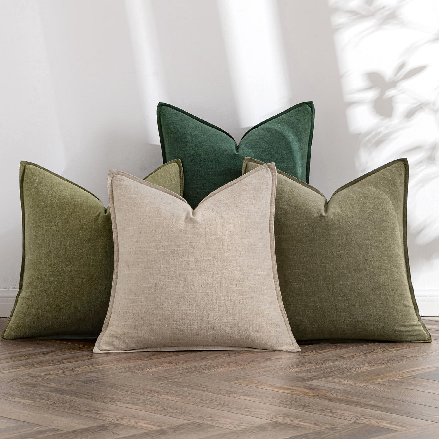 18x18 Inch Neutral Green Linen Pack of 4 Pillow Covers And 18x18 Inch Pillow Insert