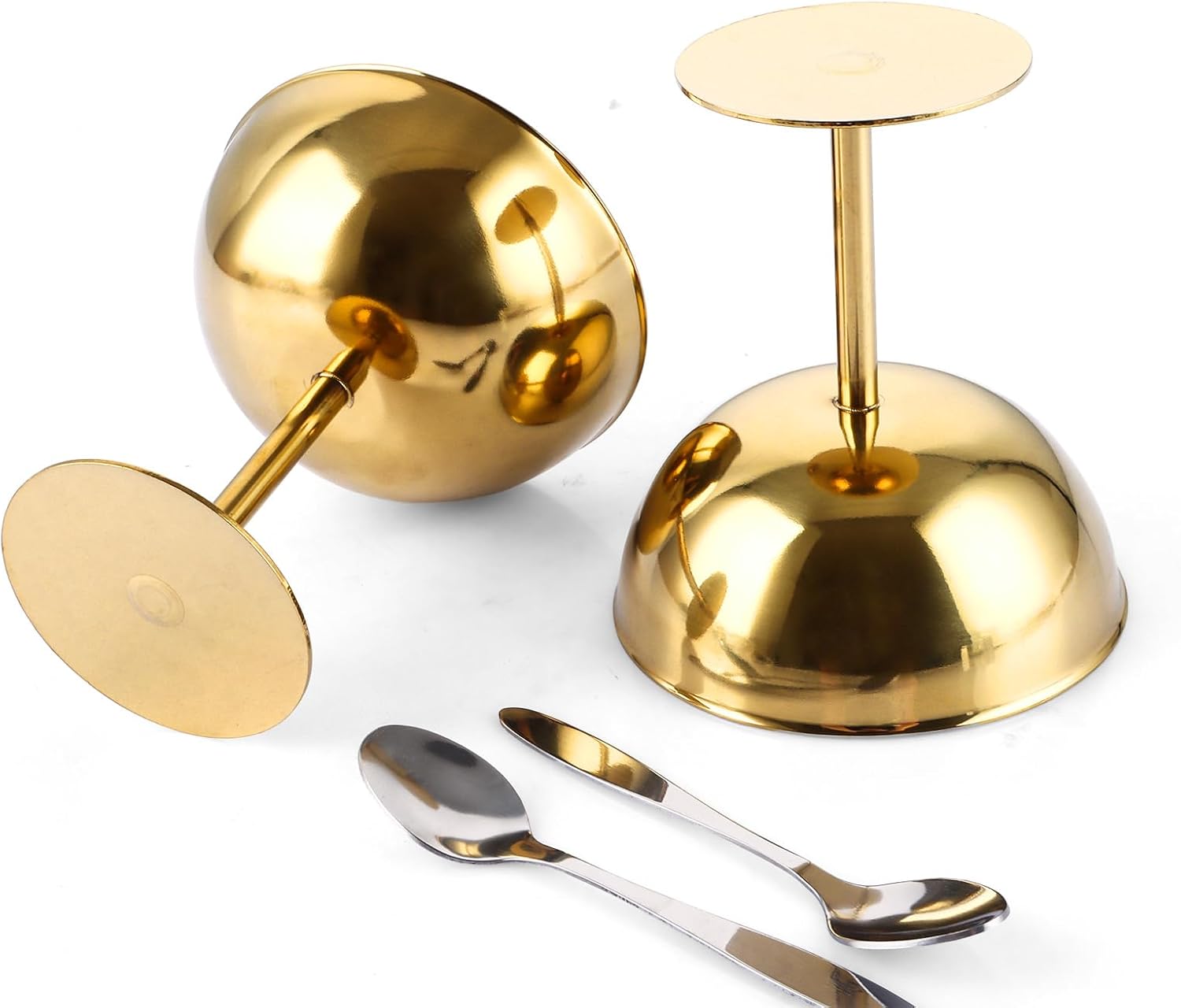 MIVIDE 4 Pack Ice Cream Cups, Ice Cream Bowl with 4 Spoons, Stainless Steel Dessert Cups Serving Dessert Bowls Silver Coupe Glasses for Pudding Dessert Frozen Yogurt Fruit (Glod)