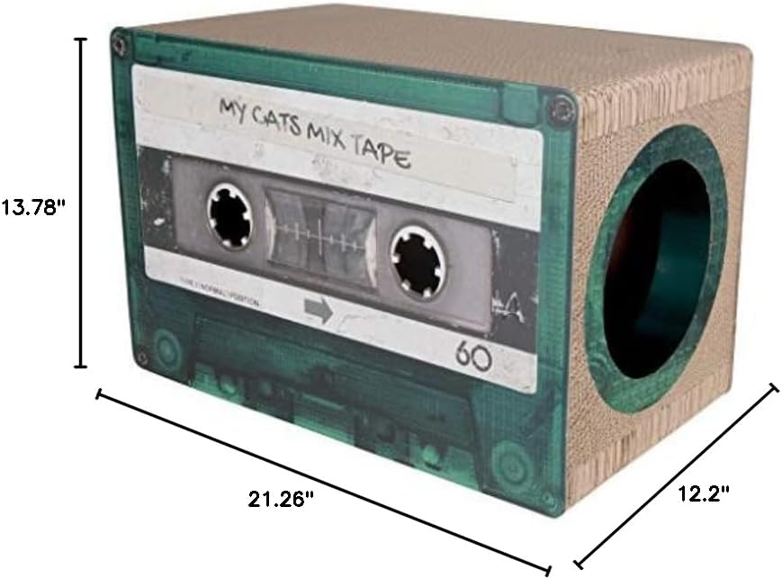 We all know our feline friends love to lounge around in cardboard boxes, but having lots of empty boxes in our home don't really make for great interior design. Why spending an afternoon relaxing in a boring, plain and old box, when there is also the opportunity to scratch their own mix tape? Let your cat rewind to the 80s by sticking its paws into the small holes!