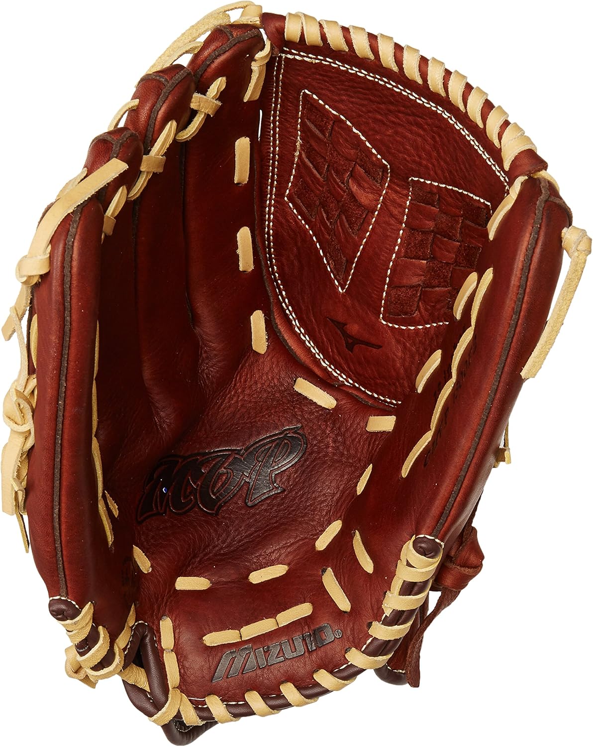 The Mizuno MVP Fastpitch glove has a design pattern that naturally centers the pocket under the index finger for the most versatile break in possible. Bio throwback leather that is soft, pebbled leather for game ready performance and long lasting durability. The ultra soft palm liner creates an excellent feeling and soft finish. V-flex notch makes closing the glove easier, less restriction in the hinge. Powerlock closure is the simplest and most secure fit available. Double hinge heel create a centered, wider pocket performance for softball. Professional level lace is the same durable lace that's offered in our professional level gloves.