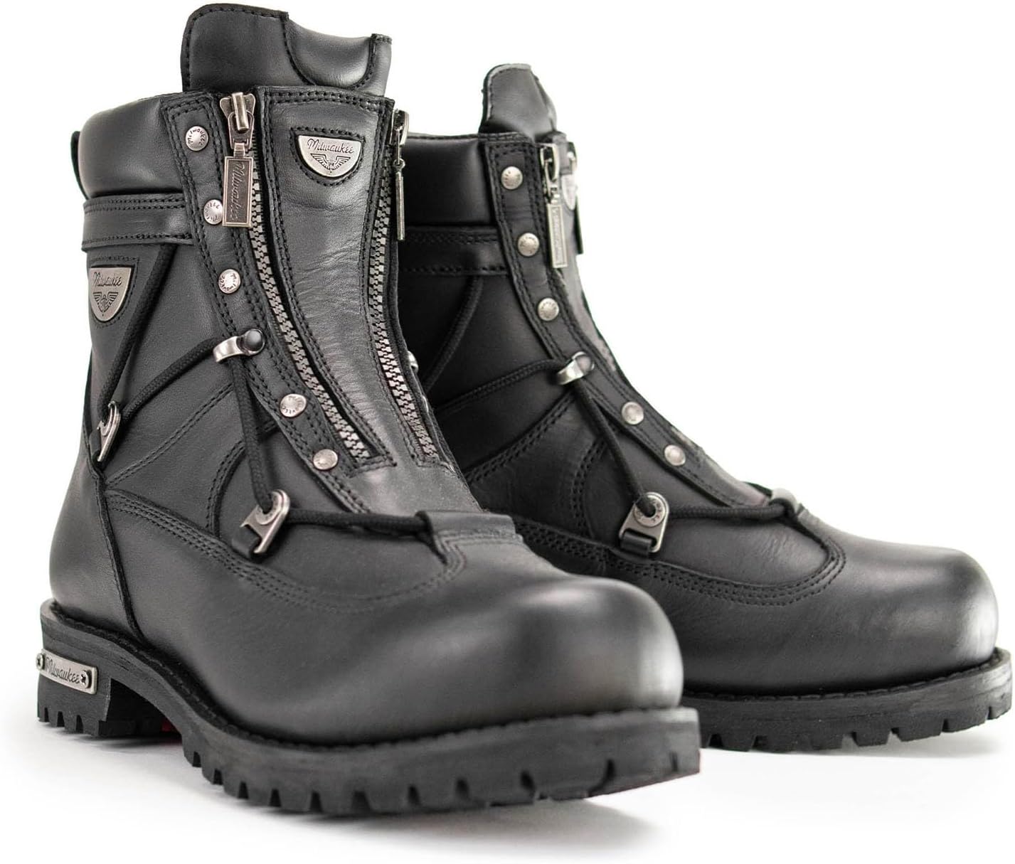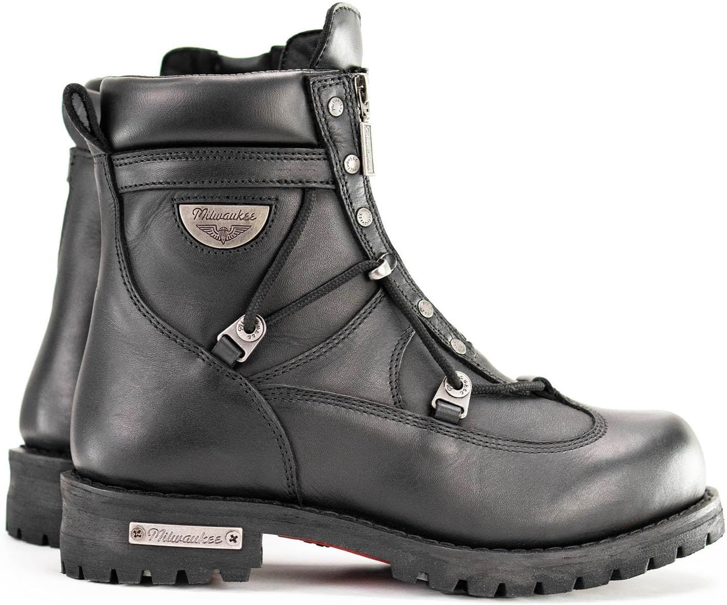 Milwaukee Motorcycle Clothing Company’s MB440EEE men’s motorcycle boots are built for riders who need real width, real leather, and all-day comfort. Made from full grain 2.2mm waterproof cowhide with welt construction, these extra-wide 6-inch boots are designed to handle rain, road grime, and long miles while breaking in to your foot and keeping their shape over time.The extra-wide EE/EEE fit opens up the forefoot and toe box so your feet have room to breathe instead of getting crushed at every stoplight. A 6-inch shaft with dual side zippers lets you set your laces once and use the zippers for fast on/off, making these boots ideal for daily commuting, touring, and weekend rides.Full grain 2.2mm thick waterproof cowhide leather upperExtra-wide EE/EEE style fit with roomy toe box6-inch shaft height with dual side zipper closureOil and acid resistant outsole with non-skid, non-marking treadSmart Mask climate control insole and Flex Power toe designMoisture-wicking linings designed to work with your body’s temperatureClassic plain toe profile with MMCC signature hardwareInside, the Smart Mask climate control insole, Flex Power toe design, and moisture-wicking linings help manage heat, sweat, and fatigue from short city rides to longer days on the highway. Combined with MMCC detailing and a clean motorcycle boot silhouette, the MB440EEE delivers extra-wide comfort and road-ready function for riders who live in their boots.