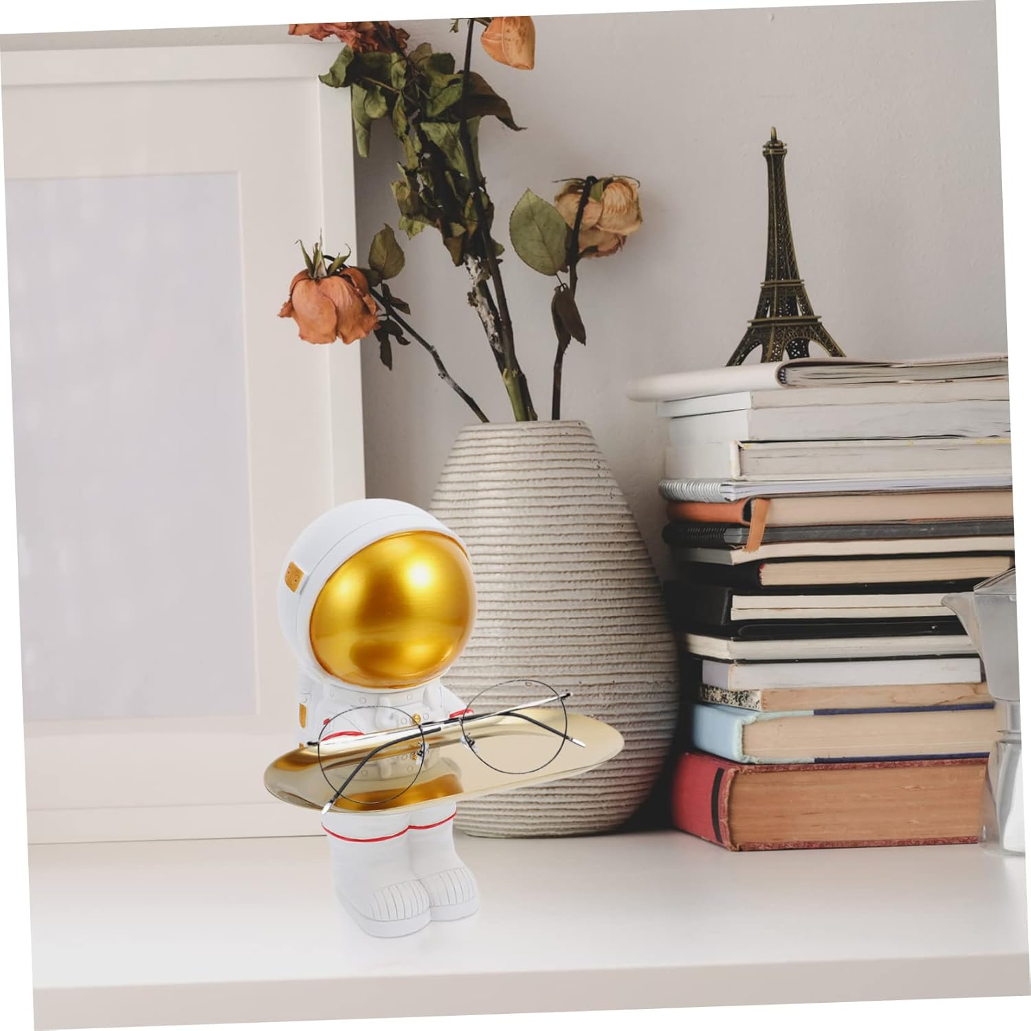 Package Include 1 x astronaut decor 1 x tray Characteristics - Material: Resin Astronaut Design Storage Tray. - Color: White Decorative Tray. - Size: About 10.00X13.00X22.00cm/3.93X5.11X8.65inch Astronaut Ornament. - The material enjoys the high durability and practicality, not easy to deform or break Porch Storage Ornament. - With the fine workmanship and , it Decorative Astronaut Tray. - It is made of high class and wear resistant material, which can withstand the lasting use Resin Astronaut Decor. - Features the unique astronaut modeling, which will create an interesting decor effect Astronaut Storage Ornament. - Make your living space less monotonous to leave a deep impression on the guests Desktop Storage Decor.Goods InformationOffice Desktop Ornament Don't underestimate the small decorative tray, it can hold many things, such as several keys, controllers, keys, bracelet and more on it.Resin Astronaut Decor This decorative astronaut tray is made of material with excellent craftsmanship, designed with an adorable shape