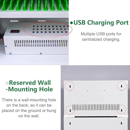 Introducing our Mobile Phone Charging Cabinet, designed to efficiently charge between 12 to 60 mobile devices simultaneously. Ideal for offices, schools, gyms, and public spaces, this charging solution combines convenience, portability, and enhanced safety. The sleek and simple design not only complements any environment but also makes cleaning effortless—just wipe it down with a damp cloth. **Key Features:** - **Durable Construction**: Crafted from robust cold-rolled steel, our cellphone locker resists rust and ensures long-lasting use. - **Versatile Functionality**: Store and charge devices securely, accommodating various mobile phones with ease. - **Smart Design**: Phones are stored vertically, utilizing ABS industrial flame-retardant plastic partitions for added safety. - **Comprehensive Protection**: Equipped with a leakage protection switch, grounding wire, and safeguards against short circuits, overloads, overcurrent, and overheating. **Specifications:** - **Material**: Cold-rolled steel, tempered glass, ABS partitions - **Color**: Silver white - **Input**: 220V/110V - **Output**: 5V, 2A per port; Total output power of 300W - **Ideal Use**: Perfect for living rooms, family spaces, media rooms, studies, or offices **Size Options**: - 12 slots: 33×27×36 cm (8kg) - 20 slots: 58×27×43 cm (15kg) - 30 slots: 46×27×61 cm (17kg) - 40 slots: 58×27×61 cm (20kg) - 50 slots: 58×27×79 cm (25kg) - 60 slots: 58×27×79 cm (25.6kg) **Included in the Package**: - Mobile Phone Charging Station Organizer x 1 **Safety Reminder**: For optimal use, do not leave devices unattended while charging. Ensure the cabinet cools down before handling for safety. Experience the convenience of organized charging and enhance your space with our Mobile Phone Charging Cabinet!