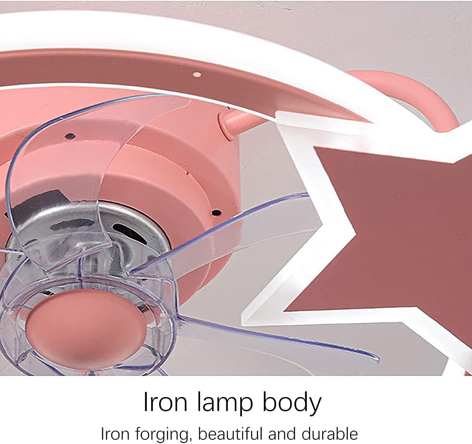 Each product is strictly tested to ensure superior quality.Our goal is to provide our customers with efficient, convenient and high-quality products.Thank you for visiting our store and wish you a happy shopping!Product parameters:· Type: Ceiling fan with light and remote control· Style: Children· Shape: Star· Shade color: pink/gold/blue· Applicable area: 8-15 square meters· Material: Iron + Acrylic + Pure Copper DC Motor· Voltage: 110-240V· Power: 124W· Function: lighting + dimming + 6 wind speeds + timing + reversible fan blade (remote control)· Light source: LED three-tone light (white light/neutral light/warm light)· Applicable rooms: bedroom / living room / lounge / children's room / study room and other places· Product size: 50 * 40 * 15 cm· Weight: 4KGPackage list:· 1 × fan with lightAll mounting hardware required is included in the package, you just no need to connect the wire, Installation is very convenient.