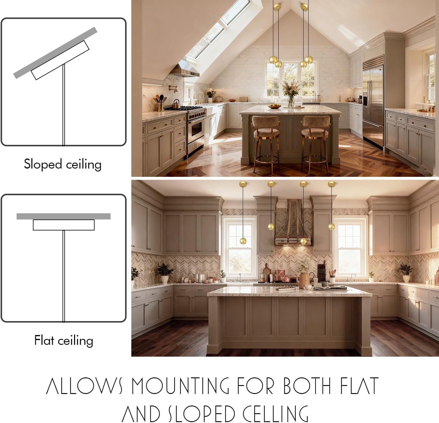 | Other Special Features of the Product | Adjustable Height Feature: Effortlessly modify the height of each modern pendant lighting unit using the convenient PVC cable, with a maximum adjustable drop of 42.72 inches. This ensures your hanging pendant light fits perfectly in your intended space., Dual Control & Dimmable with 5 CCT Options: Enjoy ultimate control with 5 color temperatures (2700K - 5000K), managed via a slide dimmer and wall switch. The flicker-free dimming from 10% to 100% allows you to create a cozy dining atmosphere or tailored task lighting with these versatile pendant light fixtures., Easy Installation Process: We provide all necessary hardware and a detailed guide for a straightforward setup. The installation is quick and convenient. You can also customize the length of these pendant light fixtures to perfectly match your home's décor., Versatile Pendant Light for Sloped/Flat Ceilings: This adaptable hanging pendant light is designed for sloped ceilings and skylights, allowing for flexible installation in various locations. Easily mount this versatile modern pendant lighting fixture to illuminate your kitchen island or other unique spaces., Wide Application for Any Setting: Available in three elegant colors—Gold, Black, and White—this pendant light adds a refined touch to your home. It's ideal for kitchen islands, living and dining rooms, bedrooms, kitchen sinks, bathrooms, hallways, foyers, entries, corridors, guest rooms, offices, cafes, bars, and restaurants. |