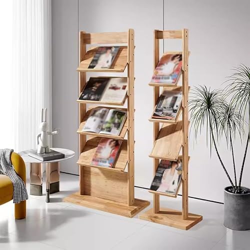 Transform your living space with our vintage solid wood magazine rack, designed to enhance any home, apartment, office, or dorm. This stylish display shelf not only serves as a functional organizer for your magazines, books, and newspapers, but also adds a touch of elegance to your decor. Measuring at heights of 143cm and 155cm, with base dimensions of 42×24cm and 77×34cm, it fits seamlessly in various settings like living rooms, lounges, and home offices. Our magazine rack is crafted from sturdy solid wood, ensuring durability and stability for long-term use. The open design allows for easy access and visibility of your reading materials, making it simple to find exactly what you're looking for. No more cluttered surfaces—this rack promotes a tidy environment, which can uplift your mood and create a more organized space. Installation is a breeze with all necessary hardware included, allowing you to set it up quickly and effortlessly. Whether you're an avid reader or just need a stylish solution to keep your magazines and comic books in order, this magazine rack is the perfect choice. Elevate your space with our functional and attractive magazine holder. Enjoy a well-organized area for your reading materials and bring a sense of charm to your room. Please note that slight variations in size and color may occur due to manual measurement and lighting differences.