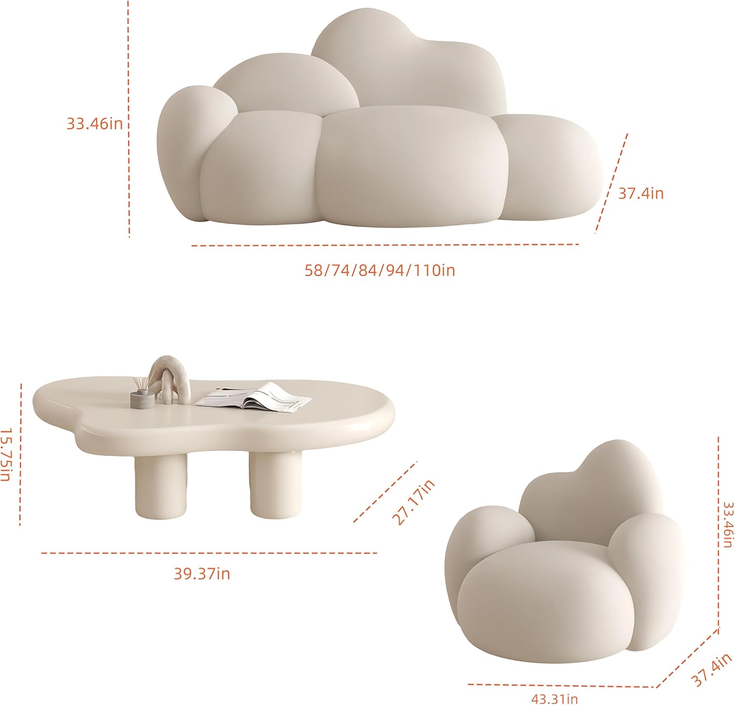 | Item Dimensions D x W x H | 37.4"D x 110"W x 33.46"H |