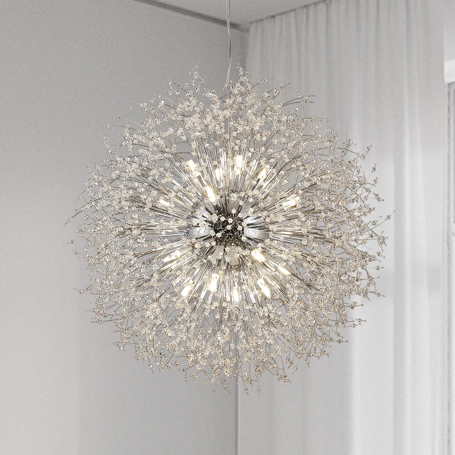 | Included Components | 16pcs LED G9 Bulbs, 1pc Canopy and Hanging Wire, Accessories and Installation Instruction, Crystal Strings and 1pc Metal Ball |