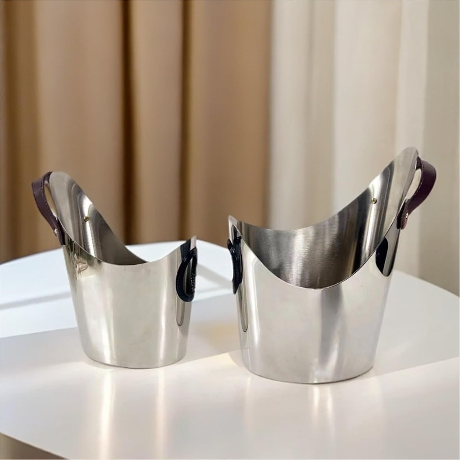 Material Stable: Stable performance and long service life, it can keep your drinks at refrigerated temperatures for hours.Product: Ice BucketMaterial: Stainless steelSize: 25x12x26cm, 28x15x31cmStyle: ModernApplications: Home, Hotels, Bars, Cafes, RestaurantsIncludes: 1x ice bucket, no accessoriesWide application: Ice bucket is suitable for homes, bars, restaurants, buffets, picnics, outdoor and indoor parties.Perfect for when you need ice-cold champagne at a party. Not only is it practical, it also adds a touch of elegance to your party decorations.