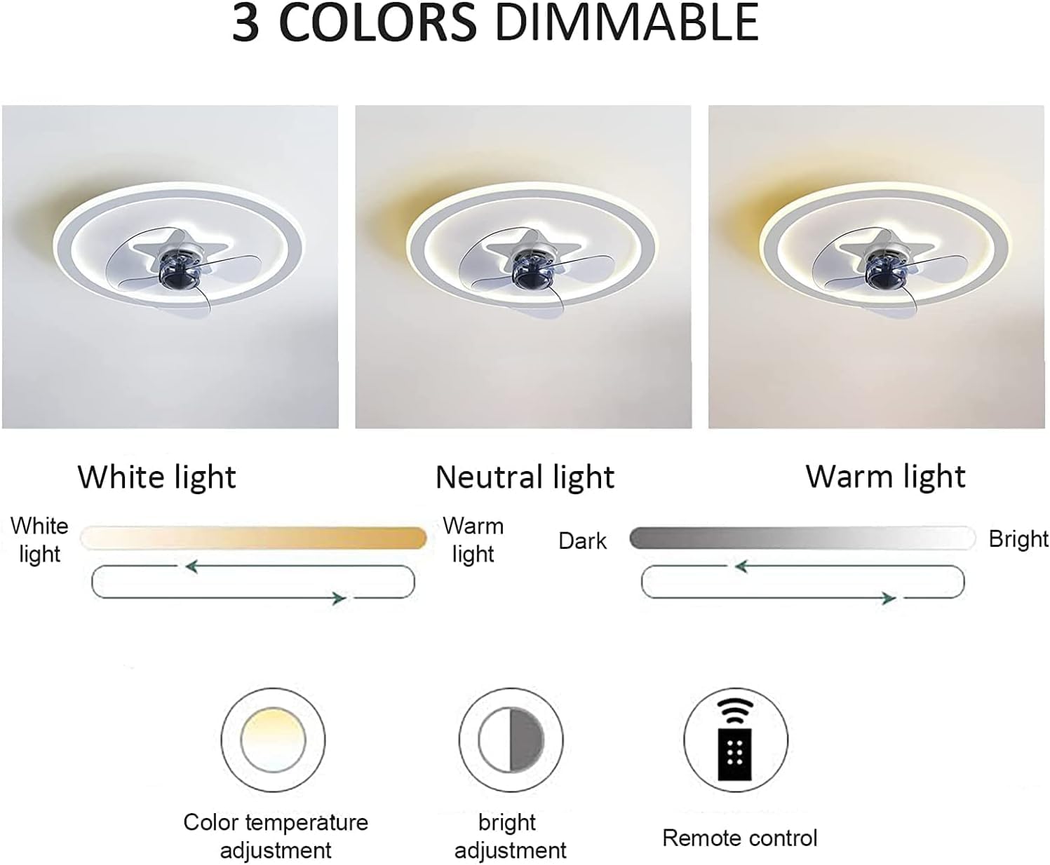 Each product is strictly tested to ensure superior quality.Our goal is to provide our customers with efficient, convenient and high-quality products.Thank you for visiting our store and wish you a happy shopping!Product parameters:· Type: Star ceiling fan with light· Style: Children· Shape: round· Shade color: white/pink/blue· Applicable area: 5-15 square meters· Material: iron + acrylic + pure copper motor· Voltage: 110-240V· Power: 46W*2· Function: lighting + dimming + low / medium / high three wind speed + timing (remote control)· Light source: LED three-color segmented dimming (white light/neutral light/warm light)· Applicable rooms: bedroom / living room / lounge / children's room / study room and other places· Product size: 45 * 45 * 12 cmPackage list:· 1 × fan with lightRemarks:All mounting hardware required is included in the package, you just no need to connect the wire, Installation is very convenient.
