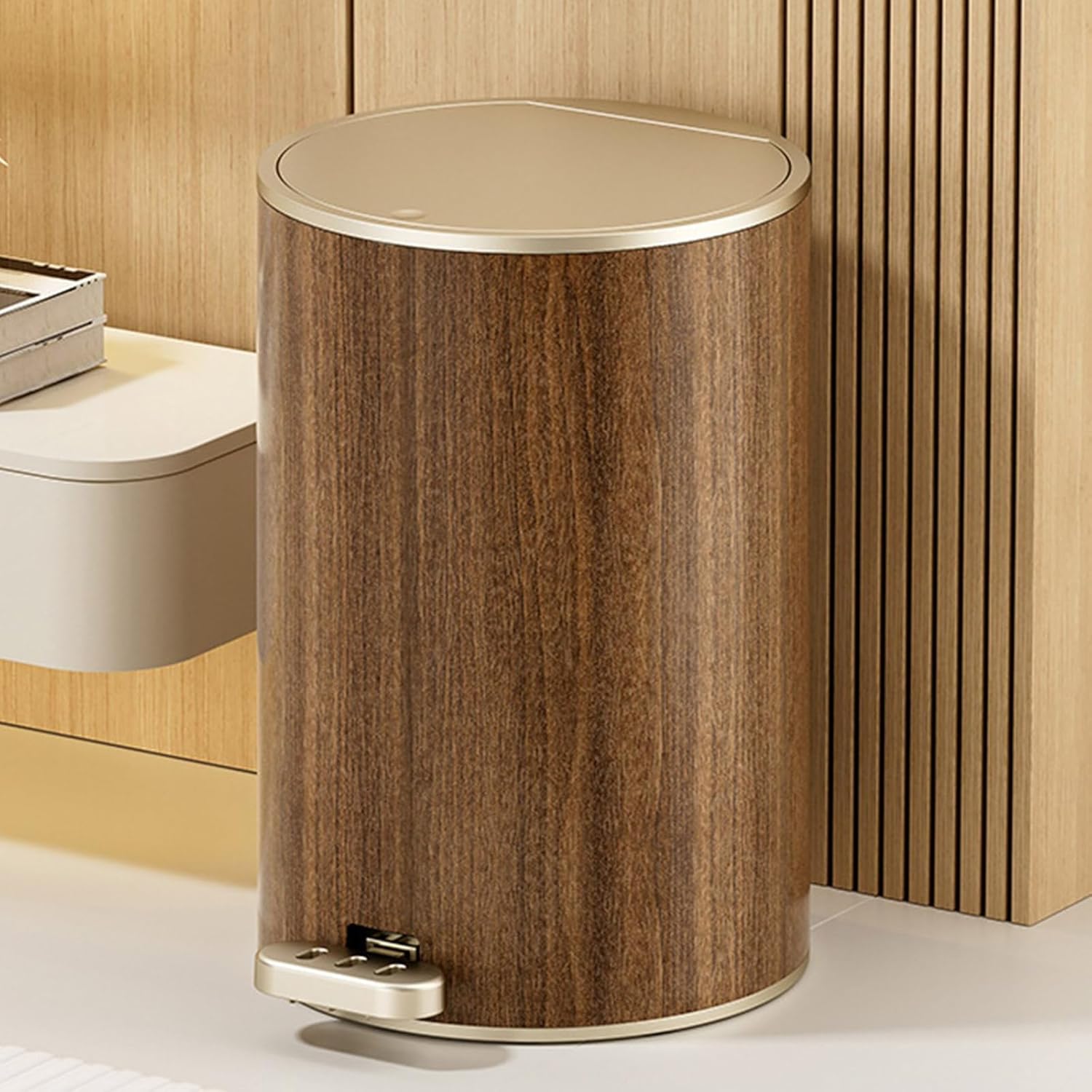 Modern Trash Can Wood Grained Texture Garbage Bin Sealed Trash Can With Lid Easy To Use For Living Room 9L/12LFeatures:Enhances home decoration with our elegant Wood Grained designing trash can, offering a large capacity to meet daily needs.Crafted from friendly ABS, this trash can with slip base for stability and easy opening lid for waste disposal.For families who values living, office professional, and individuals.Perfectly suited for various environment such as living rooms, bedrooms, kitchens, or offices, seamlessly blending into any interior designing.This waste bin combines functionality making it a must accessory in modern homes and workplaces.Specifications:Component: ABS Capacity:9L/12LSize:about 22x28CM/8.66x11.02in 22x33CM/8.66x12.99inPackage Includes:1PCTrash CanNote:Please allow 0-1cm error due to manual measurement. please make sure you do not mind before you bid.Due to the differences between different monitors, the picture may not reflect the actual color. Thank you!