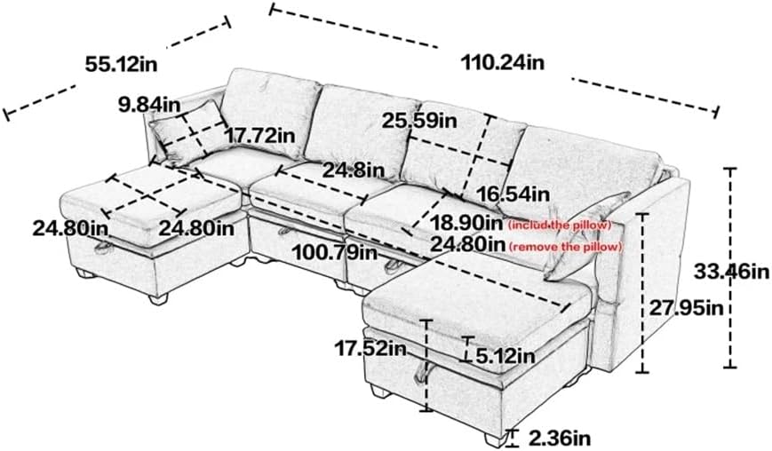 This U-shape sectional sofa needs to be assembled,instructions manual and tool includedSpacious Furniture, CouchSturdy solid wood frame, linen fabric, filled with high-density sponge, making this modular sectional sofa beautiful and comfortit can be perfectly matched with your apartment, house or conference room.Our modular sectional sofa is based on a solid hardwood frame with memory foam cushions built into the fabric, solid black legs perfectly support the entire sofa and can be used for long timeNot just U-shaped modular sofas, each seat can be moved and reconfigured. For convenience and need, you can also move and assemble any module, which is the charm of the modular modular sofa.The 6-piece modular sofa has a storage function under each seat. Not only is it a mecca for children's toys, but it can also store blankets and remote controls to make the room look neat and cleanUpholstery:LinenSeat Fill Material FoamBack Fill material Foam with upholsteryWeight Capacity 850 lbFrame Material plywoodSet Includes1*Sectional Sofa(no other presentation items included).Notice:1. Due to manual measurement, please allow 2-3% error, before you bid, please make sure you don't mind.2. The color may vary due to different displays, please refer to the actual product.