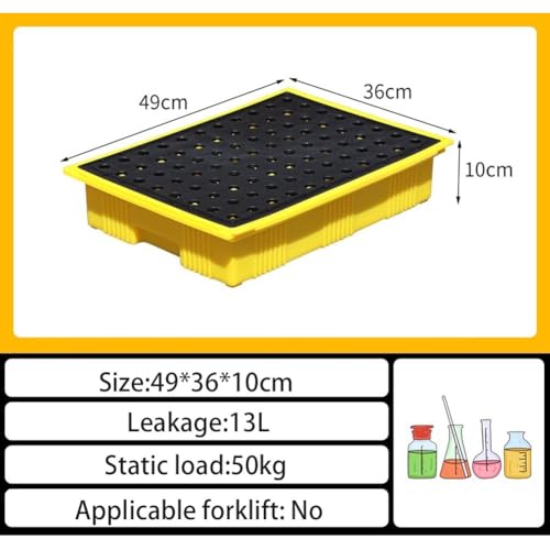 The Modular Spill Platform is devised for spill containment, featuring a seamless construction to prevent leaks and avoid potential fines. Its removable top grate simplifies cleaning. Ideal for industrial parks, warehouses, aquaculture water storage, and more.PRODUCT DETAILS: Name: Modular Spill Platform/Plastic Tray.Material: Polyethylene. Size: Available in 16 sizes (length x width x thickness).Color: Yellow+Black (eye-catching and fade-resistant).Features: Waterproof, wear-resistant, cold-resistant, strong load-bearing. Additional features: Removable, flip, liftable, storage, push-pull, hydraulic. Load capacity: Varies by size, with larger sizes supporting greater weights. PACKAGE CONTENTS: Spill Containment Platform x 1.