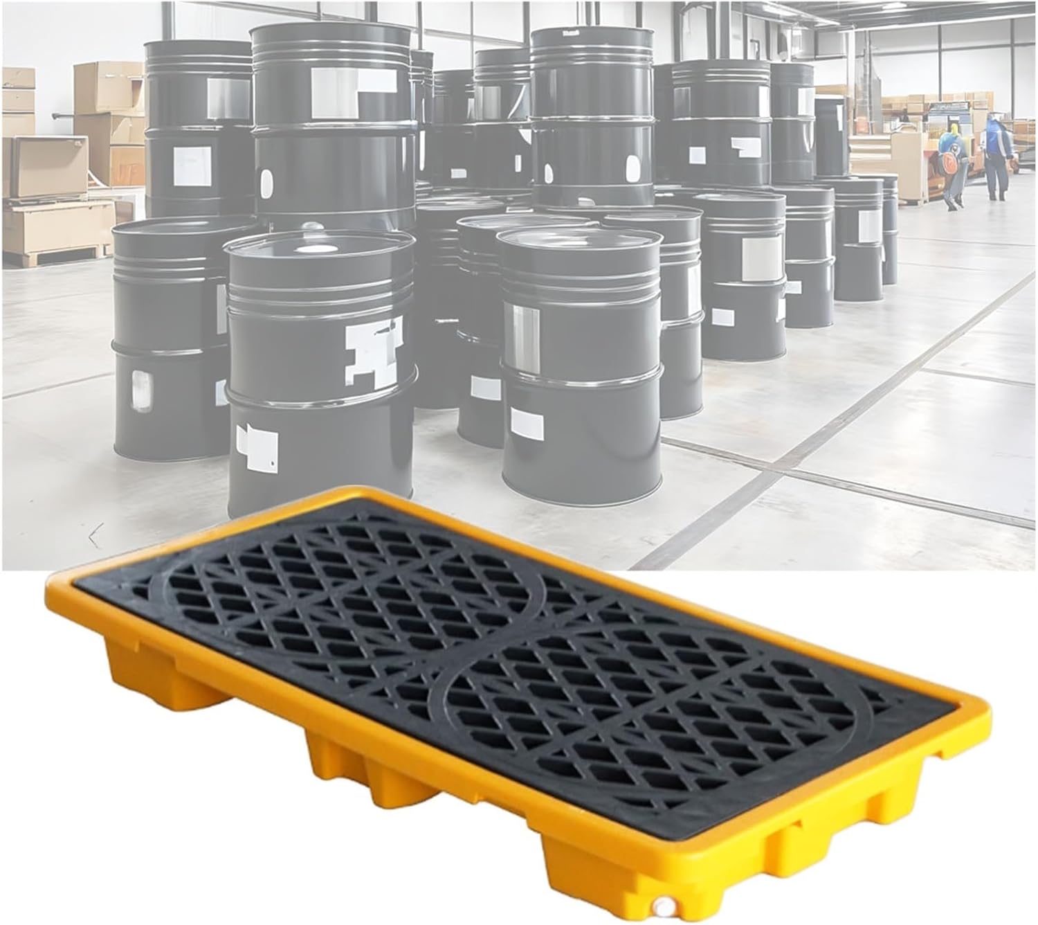 The Drum Spill Platform is an essential solution for effective spill containment in various environments, including warehouses, workshops, maintenance areas, supermarkets, and factories. Constructed from high-density polyethylene , this durable plastic pallet is designed to withstand wear and tear, ensuring long-lasting performance. The reinforced ribs on the back enhance its stability and increase the load-bearing capacity, making it suitable for heavy-duty use. Our spill-proof tray features a detachable design, allowing for easy assembly and disassembly when needed. This user-friendly aspect simplifies storage and transportation, ensuring that you can maintain a clean and safe workspace effortlessly. With dimensions available in 25.8 x 14.2 x 4.7 inches, 26.6 x 26.6 x 5.9 inches, and 51.2 x 26.8 x 5.9 inches, you can choose the perfect size to fit your specific requirements. The sleek black and yellow color combination not only adds a professional look but also enhances visibility, promoting safety in any industrial or commercial setting. Cleaning is a breeze; simply rinse the tray directly with water to keep it in top condition. Invest in the Drum Spill Platform to safeguard your workspace from spills and leaks while maintaining compliance with safety regulations. It's an invaluable addition to your industrial toolkit, providing reliability and peace of mind when handling hazardous materials.