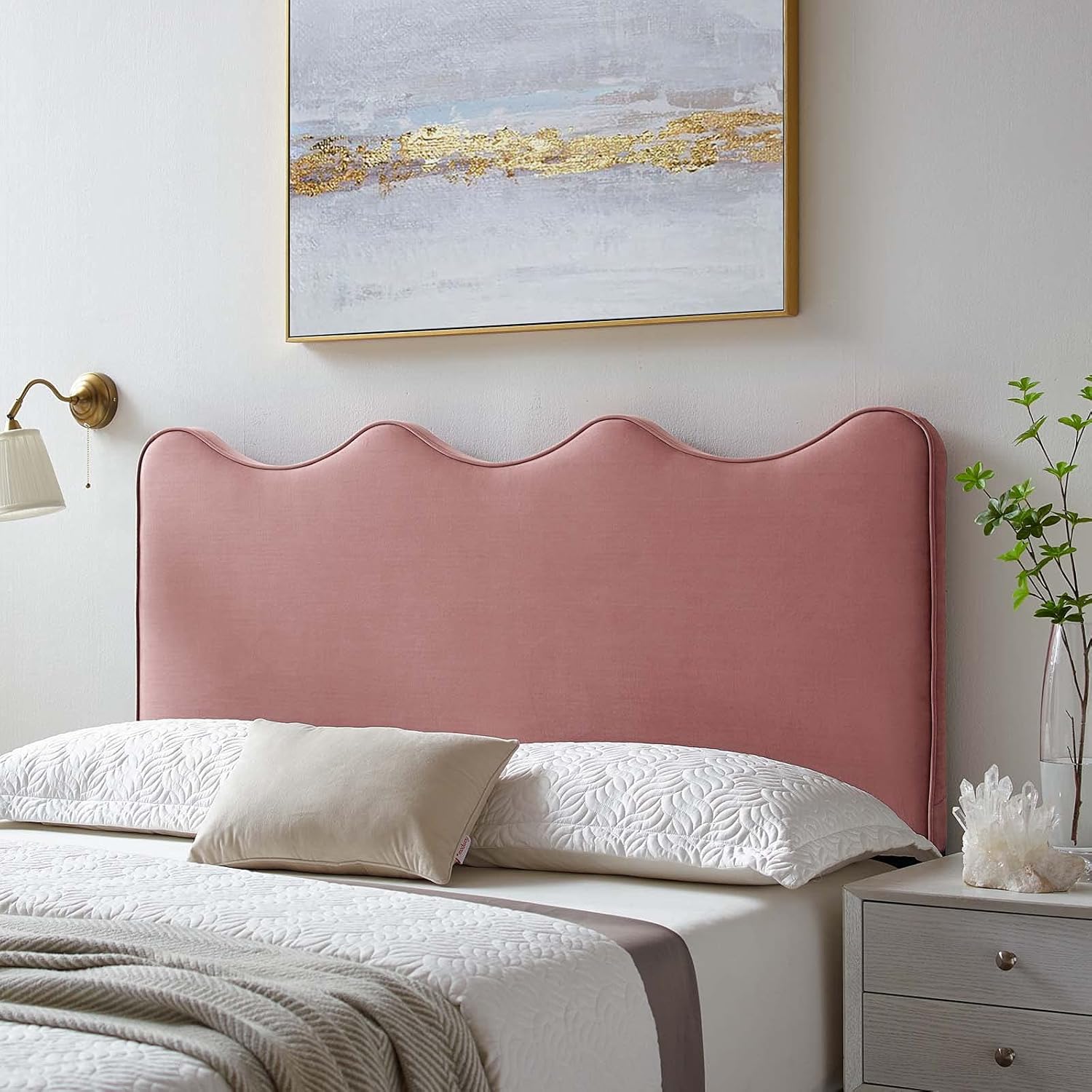 Incorporate the movement of the sea into your master bedroom or guest suite with the Athena Performance Velvet Full/Queen Headboard. Putting a modern twist on a classic scalloped design, this full or queen sized headboard features luxe texture and a silhouette inspired by the ocean waves. Covered in stain-resistant performance velvet, this upholstered headboard is complete with dense foam padding to offer a supportive place to sit back and relax while watching TV, resting, or reading in bed. With a frame crafted from MDF and plywood, this adjustable headboard for queen or full bed frames has multiple mounting positions. Assembly required.