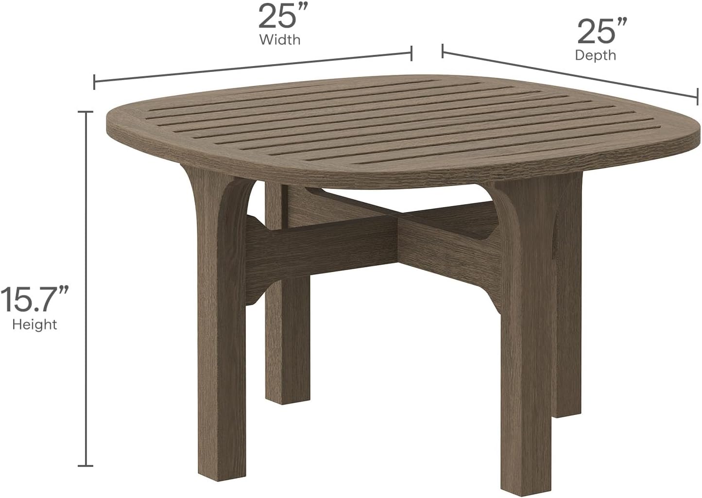 | Special Feature | Rounded Square Slatted Tabletop, Teak Wood Side Table, Weather-Resistant Water-Based Finish |