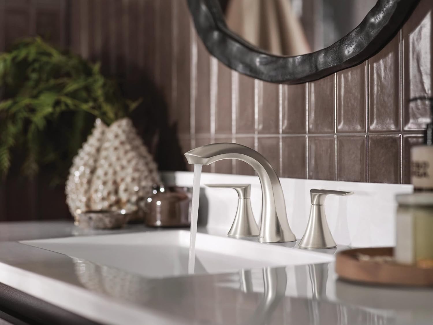 The Moen Findlay 8-Inch Widespread Bathroom Faucet in Spot Resist Brushed Nickel offers a refined blend of spa-inspired tranquility and durable, modern performance, making it a standout addition to any bathroom space. Its gently flowing curves and organic lines create a soothing visual presence, while the high-arc spout provides generous clearance for comfortable handwashing and everyday use. The dual lever handles allow for smooth, precise control of both water flow and temperature, enhancing the overall user experience. One of its most innovative features is the spring-loaded drain, which eliminates the need for a traditional lift rod, resulting in a cleaner, more streamlined sink area and simplified installation. The Spot Resist Brushed Nickel finish actively resists fingerprints and water spots, helping the faucet maintain a cleaner, polished appearance with minimal maintenance. Designed for flexible installation between 8 and 16 inches, it includes Moen’s M-PACT valve system, allowing for effortless future style upgrades without the need to alter plumbing. WaterSense certified for efficient water usage and backed by Moen’s Limited Lifetime Warranty, the Findlay faucet delivers lasting beauty, reliable performance, and thoughtful engineering—all in one elegant package.
