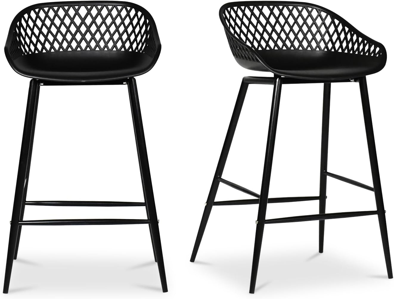 Patio perfection. With a curved seat, the Piazza counter stool is like a basket of comfort for summertime bliss. A diamond mesh back made with durable polypropylene and sleek tapered legs provide this stool's contemporary charisma, while a built-in footrest keeps things breezy. Available in two colors, pair this counter stool with others from the Piazza collection for a true outdoor oasis.Features:- Curved silhouette to promote ergonomic comfort- Polypropylene construction with a diamond mesh back- No assembly requiredSpecifications:- Product Dimensions: 19"W x 19"D x 34"H- Product Weight: 11.7 lbs- Warranty: 1 Year- Color/Finish: Black- Assembly Required: Yes- Weight Capacity: 280 lbs