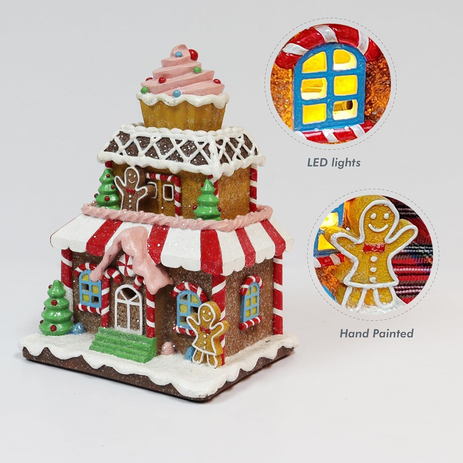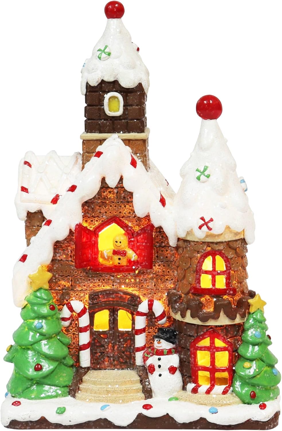 Step into a gingerbread house sugary wonderland of holiday charm with the Moments In Time 10.24”H Gingerbread Church, a delightful Christmas decoratio that brings the warmth and magic of the season into your home. Beautifully hand-painted and crafted from high-quality polyresin, this lighted holiday piece is designed to capture the nostalgic joy of a winter village scene. Every inch of this enchanting gingerbread church tells a story of festive celebration. The structure is adorned with colorful candy details, snowy frosting rooftops, and cheerful accents like peppermint-striped columns and gumdrop embellishments. The LED lights emit a soft, warm glow through the frosted windows, illuminating the intricate textures and hand-painted features that make this piece feel truly alive. Outside the church, two Christmas trees sparkle with holiday spirit, while a friendly snowman stands near the entrance to greet visitors. Above, a smiling gingerbread man peeks out from the second-floor window, spreading joy to all who pass by. The snow-covered roof glistens with subtle glitter, mimicking freshly fallen snow under twinkling lights. This charming gingerbread house is more than a decoration it’s a holiday centerpiece that adds a touch of whimsy and light to your mantel, tabletop, or Christmas village display. The battery-operated design (3 AA batteries, not included) ensures easy, wire-free setup anywhere in your home. Packaged in elegant Moments In Time gift-wrap packaging, this piece makes a wonderful holiday gift for collectors, families, and Christmas enthusiasts. Celebrate the magic of the season and make this lighted gingerbread church a cherished part of your holiday décor for years to come. Dimensions: 6.69” L x 5.12” W x 10.24” H Weight: 1.54 lbs Power Source: Battery Operated (3 AA Batteries, Not Included) Lighting: LED Lights (Warm White) Material: Hand-Painted Polyresin
