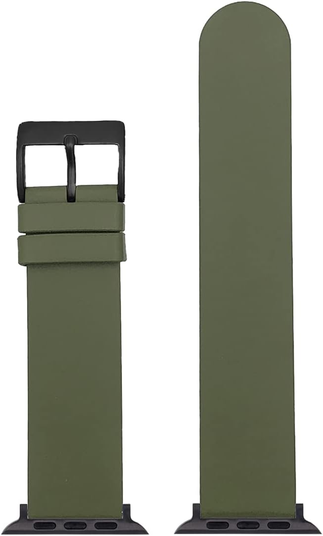 The GOMA band is made in Italy, from strong, stretchy natural rubber, with a smooth "no holes" shape. The holes are deliberately tooled only halfway through the band, so you use the buckle to "punch through" a hole for the best fit... the rest of the band remains smooth and understated, with no holes showing on the top side of the band. The back is textured for better breath-ability. Completely waterproof: just wash with soap and water if it gets dirty.