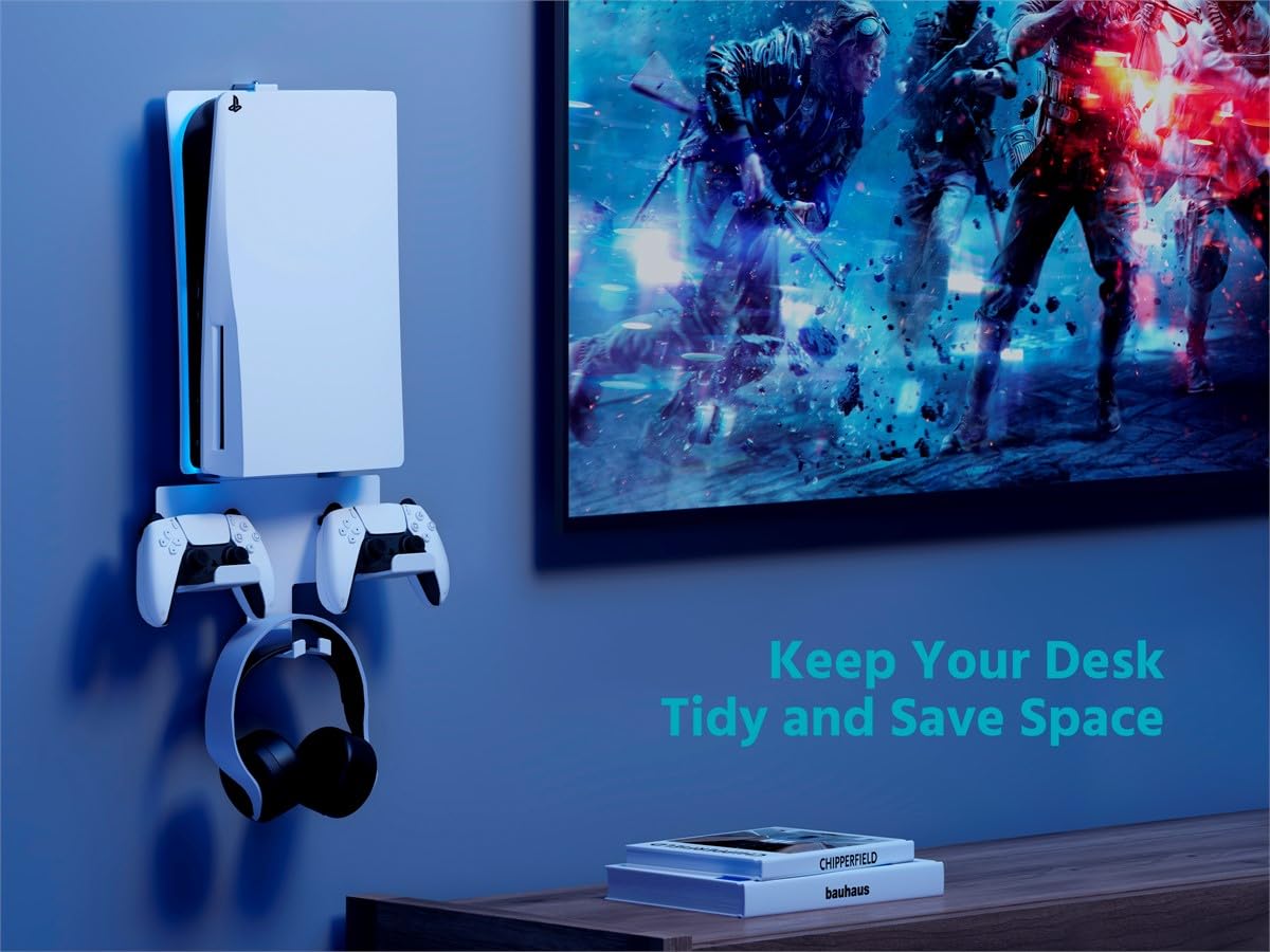 Upgrade your gaming setup with the Monoprice PS5 Wall Mount—an essential accessory for every PlayStation enthusiast. Designed for seamless compatibility with full-size PS5 editions (Digital, Disc, and Pro), this wall mount maximizes your space by freeing up valuable desk or entertainment center surfaces. With its sleek, modern design, it not only displays your console in style but also maintains a clutter-free environment, ensuring your system is always ready for play. Constructed from heavy-duty steel, the Monoprice PS5 Wall Mount guarantees unmatched strength and stability, securely supporting up to 22lbs (10kg). The included accessory hanger brackets, made of high-grade plastic, feature integrated hooks for convenient organization of headsets, controllers, and other gaming gear. Keep everything within arm’s reach while maintaining a clean and visually appealing setup. Measuring 23" x 11.8" x 5.1" (585 x 300 x 130mm), this mount is the perfect blend of functionality and style, enhancing any gaming or entertainment space. Each package includes all necessary mounting hardware and holders for quick, hassle-free installation. Elevate your gaming area with the Monoprice PS5 Wall Mount—where organization meets modern design. Note: Not compatible with the PS5 Slim editions.
