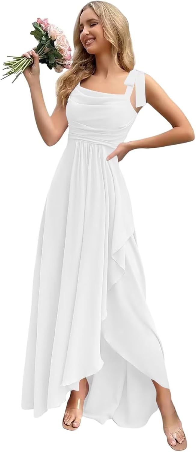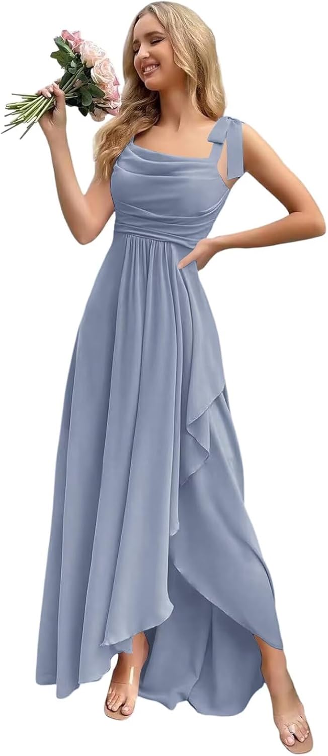 Welcome to Monvelli, we are a professional dress manufacturer, all of which we are using high-quality fabrics.Product Features:1.Fabric: Flowy Chiffon2.Silhouette: A-Line3.Length: Floor Length4.Neckline: Cowl Neck5.Sleeves: Sleeveless6.Embellishment: Asymmetrical, Ruffles, Bow Straps, Empire Waist, Hidden Pockets7.Back Style: Lace upIf you are not sure of your size, please take the measurement according to the measurement table. The measurement details are as follows:1.Full Bust _ inch2.Waist _ inch3.Hips _ inch4.Hollow to Floor _ inchWe also provide other customized service. If any requirements, please contact customer service first.Warm Tips:1. The real color of the item may be slightly different from the pictures shown on website due to camera quality and monitor settings. Photos are taken in natural light with no flash.2. For the urgent order,please contact us before placing order to ensure you can get it on time.3. For more information on returns or customization, please feel free to contact us, we provide 24 hours online service.
