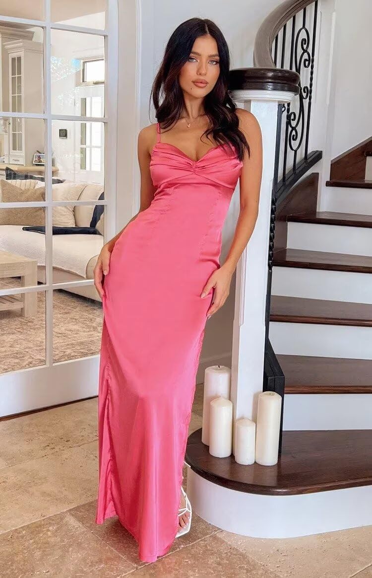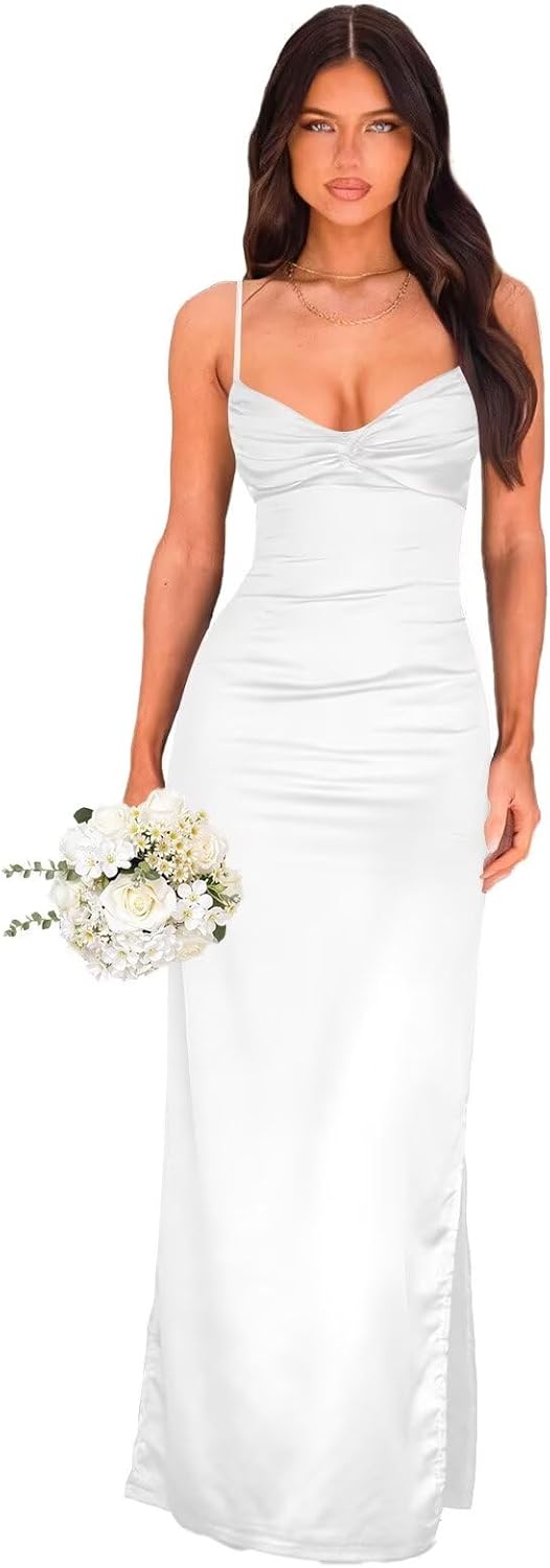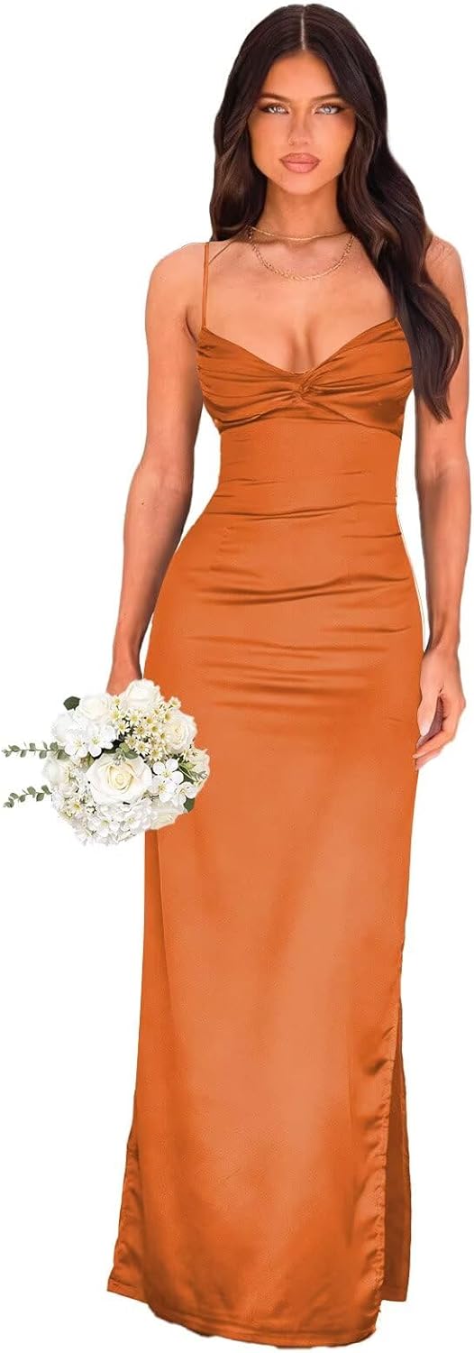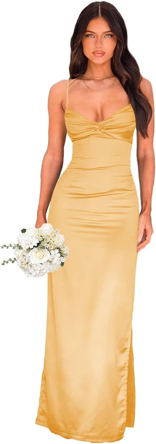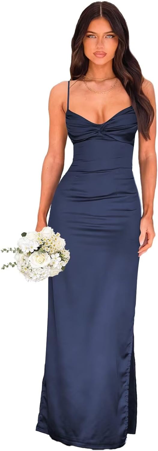 | Embellishment Feature | Pleated, Satin, Split, V Neck |