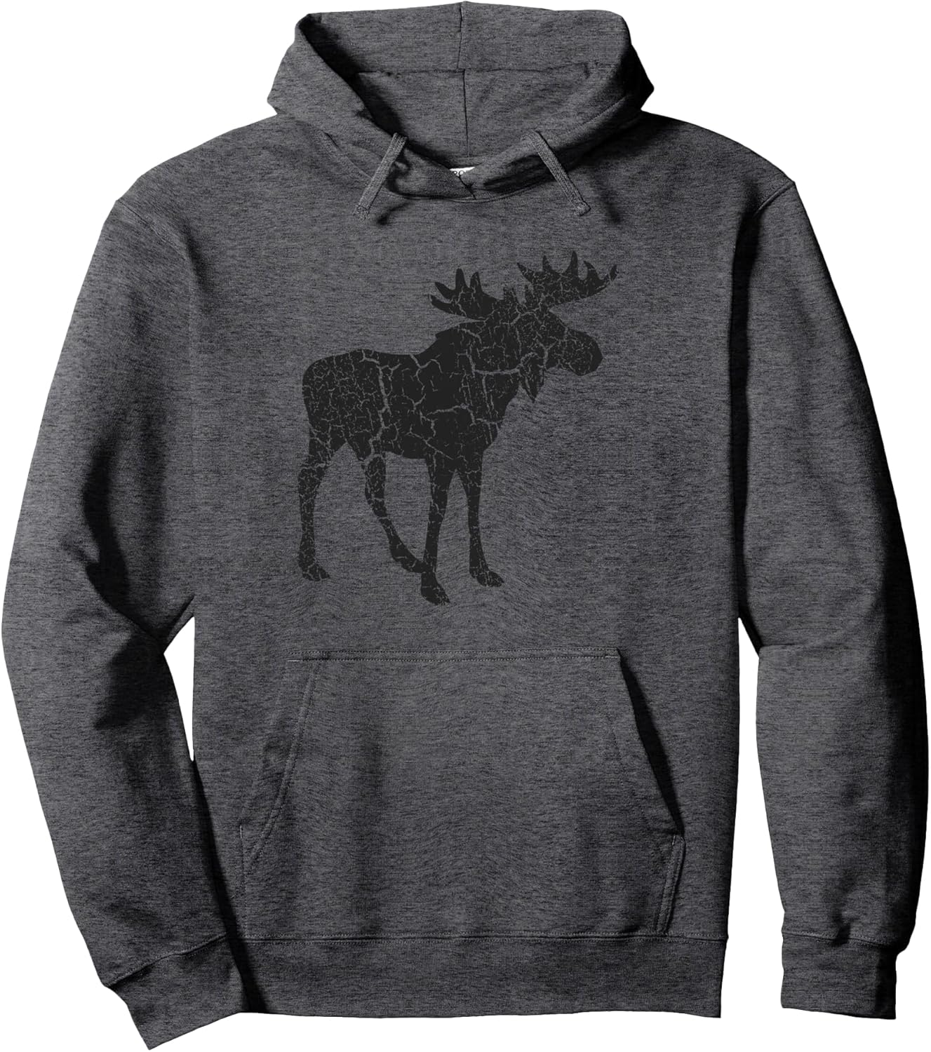 Vintage distressed moose with gray tone & cracked effect for men, women, and kids who love moose. Vintage Moose gray print on black, white and dark colors. Grey vintage moose for girls, boys and youth. Gift ideas for moose lover.