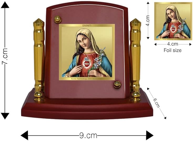 Brings sparkle to your life with new relishing Divinity Gold Plated Gifts. A perfect gift touches your heart and your soul. To show respect and belief in spirituality with beautiful car dashboard gold plated frames. India is a country where every religion is most important. We will find spirituality at every corner in India, We all seek blessing by going to the temple to buy a new house or car. The first mention of Mary is the story of the Annunciation, which reports that she was living in Nazareth and was betrothed to Joseph (Luke 1:26 ff.), and the last mention of her (Acts of the Apostles 1:14) includes her in the company of those who devoted themselves to prayer after the ascension of Jesus into heaven.. Why is Mary called the Blessed Mother? Mother of God: The Council of Ephesus decreed in 431 that Mary is Theotokos ("God-bearer") because her son Jesus is both God and man: one Divine Person with two natures (divine and human). This name was translated in the West as "Mater Dei" or Mother of God. From this derives the title "Blessed Mother" Gold Plated Photo Foil 24Ct Gold Plated Foil God Idol Photo frame, made using high-quality MDF wooden frame and beautifully crafted using Swiss Technology to give a classic touch to your classic car. About us: Diviniti is a gift for a lifetime. A brand is known to maintain a legacy of over sixty years. It is a name synonymous with excellence. We offer aesthetic figurines of God and Goddesses in different shapes, sizes, and designs. Our entire portrait is in pure 24-carat gold plating. Our all products are of supreme quality and made by paying great attention to the fine details and using vibrant colors. All our products are very durable and true value for money. We didn’t import anything Right from the raw material to the finished product are made in India, and shall arrive at your home packed with utmost care to avoid any damage during transit.