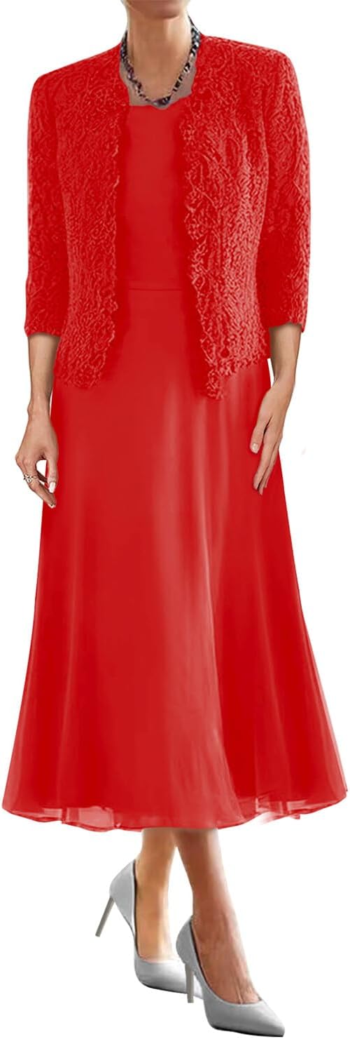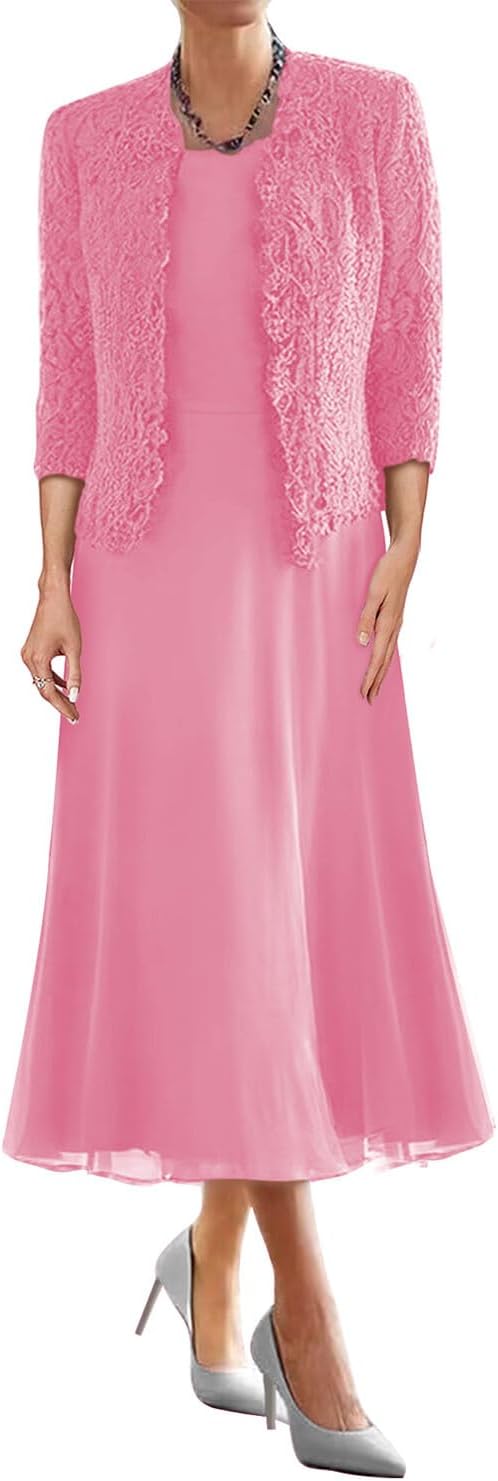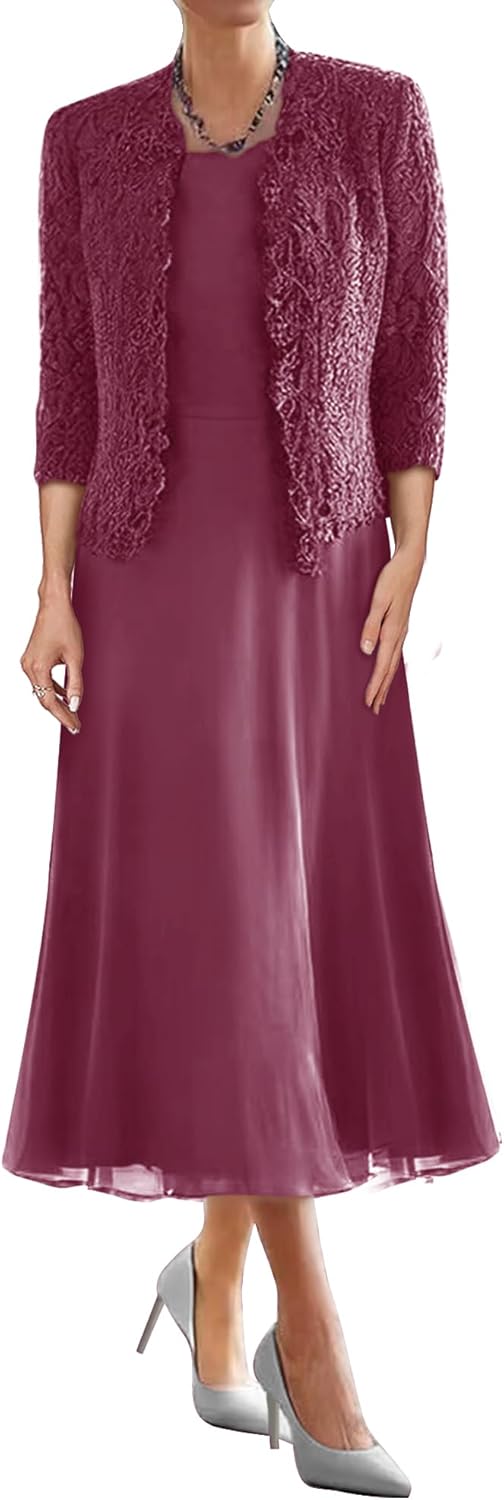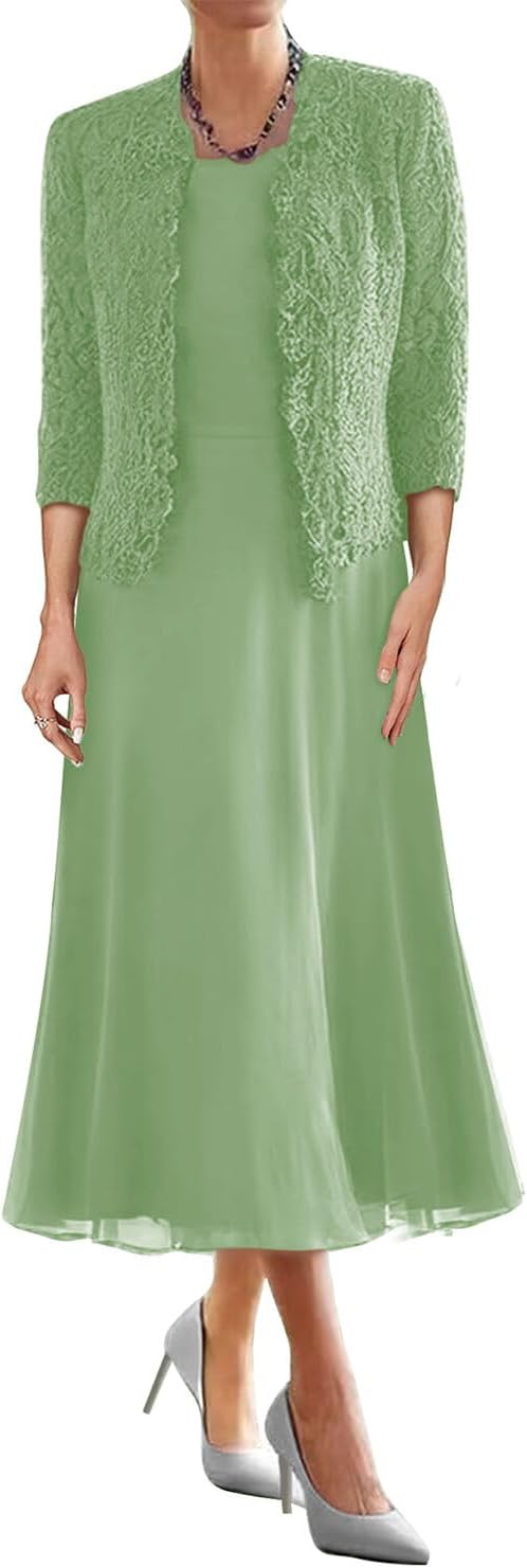 Mother of the Bride Dresses for Wedding Tea Length Evening Formal Dresses Lace Wedding Guest Groom Dress with Jacket for WomenItem DescriptionGender:Womens,Teens/Teenager GirlsFabric:High Quality Chiffon and LaceFeatures:A Line,Scoop Neck,3/4 Sleeve,Lace Jacket/Bolero,Two Piece/2 Piece,Short/Tea Length,Zipper Back,Built-in BraCustomized ServicesCustomized Size and Color are also available,detailed measurements as follows:A.Bust _____ inchB.Waist _____ inchC.Hips _____ inchD/E.Waist to hem / Floor_____inchF.Hollow to floor(Without Shoes)______inchG.Height(Without Shoes)______inchH.Shoulder to Shoulder______inchI.Sleeve Length______inchJ.Armhole(Armseye)______inchK.Armpit(Biceps)______inchL.Height of Shoes(Shoe Heel)______inchM.The date you need the dress_____