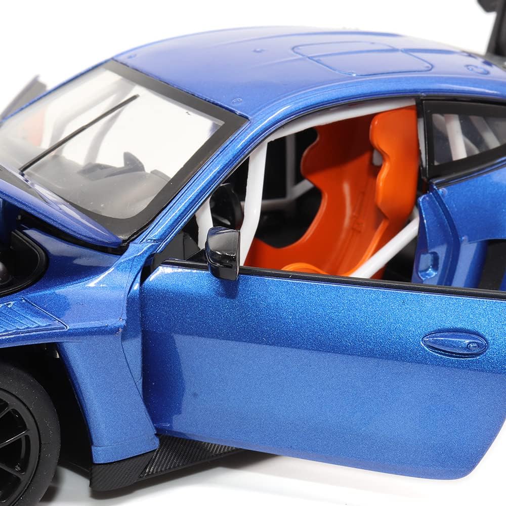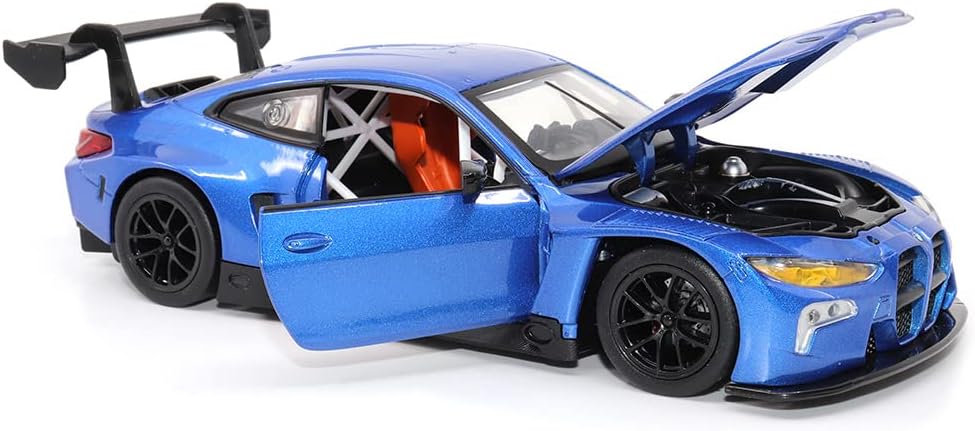 This 1/24 diecast scale model of the BMW M4 GT3 in stunning blue color is a must-have for car enthusiasts and collectors alike. The front part and doors of this beautifully crafted model open, revealing the intricate details of the interior and engine. It comes with a sleek display stand, making it a perfect addition to any collection or desk. The BMW M4 GT3 is a high-performance racing car designed for track use. It features a 3.0-liter six-cylinder turbocharged engine that produces over 500 horsepower, paired with a six-speed sequential racing gearbox. The car has a lightweight construction and aerodynamic design, with advanced suspension and braking systems for precise handling and control. It is used in various international racing events, including the GT World Challenge, the Nurburgring 24 Hours, and the IMSA WeatherTech SportsCar Championship.