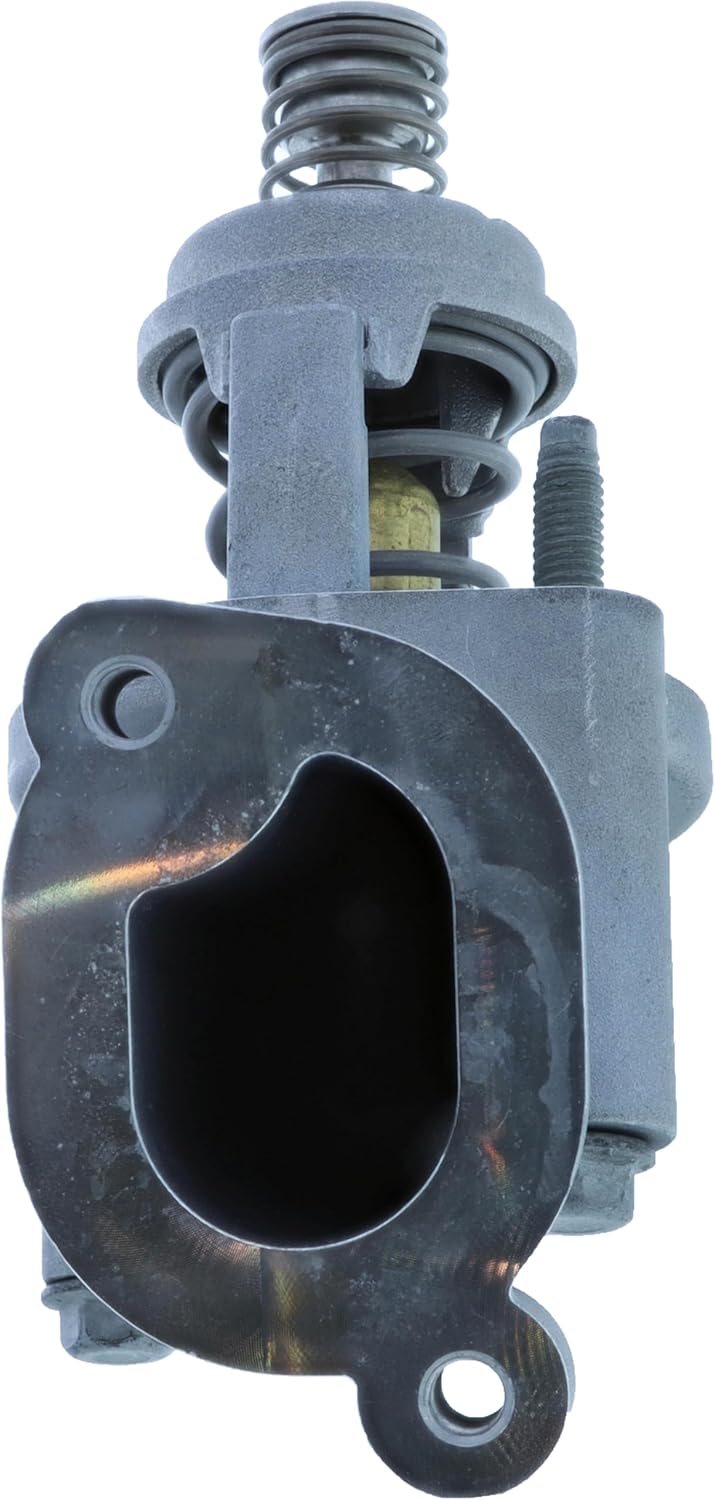 Water outlet thermostat housing made of durable material for a long lasting life. Thermostat is integrated into housing assembly, simplifying installation.