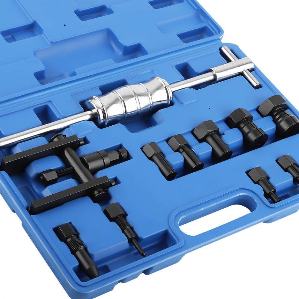 12pc 8-25MM Motorcycle Blind Inner Bearing Puller Tool Slide Hammer Insert Internal Bearing Removal Tool SetSpecification:Diameter: 8-32mmchclamping /0.31inch-1.26inchrange: 25-65mm/0.98inch-2.55inchItemslide hammer length :1.2 ft (360 mm)Type: Motorcycle Bearing PullerMaterial: 40chrome and 45# steelApplication: Universal Compatible with motorcycle andautomotiveFeature:STEEL: These wheel bearing remove tools are made of steel, strong and hard, wear-resistant and rust-, fine workmanship.SAFE AND RELIABLE : This bearing puller set's extendable collet and threaded screw adapter removes tight and seized axles, bearings, and bushings from a variety of vehicles, smoothly ejecting bearings without damaging wheels or parts.EASY TO USE: Compatible with most parts, simply install the proper collet, lock it in the inner race, and pull back the weight of the sliding hammer to easily knock out the bearing or bushing; Compatible with tighter or more delicate operations, the countersink hammer can be slowly tightened to remove the part more carefully.PACKAGING :The 12-piece motorcycle wheel bearing puller tool comes with a blow-molded case that organizes the parts and makes them easy to carry, store and maintain.Package included:1*slide hammer with1*Two-claw puller2*Regulating valve8* colletsCompatibility Disclaimer: This is an aftermarket replacement part. Any brand names or model designations mentioned are used solely Compatible with the purpose of demonstrating compatibility.