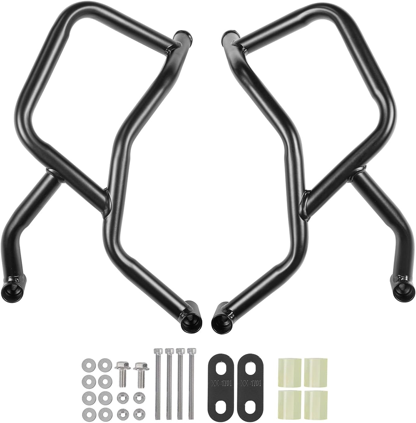 We are professional factory specialized in motorcycle accessories.A great modification accessory to makes your motorcycle more aggressive and to be eye-catching.Fitment: Motorcycle Crashbar Compatible with CF 800MT 2021-2024.Specification:Condition:100% Brand new aftermarket itemColor: BlackMaterial and Workmanship: Made of high quality Heavy Stainless steel, durable, scratch resistance,strong hardness and has a long service life.Placement on Vehicle: Front Under Feature:Smooth line: The edges are polished and beautifully finished. Feature:Perfect replacement for your motorbikeStrong frame connection and smooth finish,Reliable protection of important motorcycle parts. These motorcycle crash bars are designed to protect frame and fairing from contacting the ground in the event of a fall or slide, minimizing damage to your motorcycle. A great upgrade from the original appearance of the motorcycle. Package include: ➢1 *(Left+Right) Crash Bar for 800 MT ※All mounting screws are included.Warm prompt:We strongly suggest comparing the posted picture to your faulty/old unit!Please kindly check your motorcycle's model and confirm this item is suitable for it before ordering.Installation:Easy to install,assemble and disassemble with great convenience,direct replacement.Highly recommended installation by professional.Please message us if you have any questions during the purchase process! Thank you for visiting!