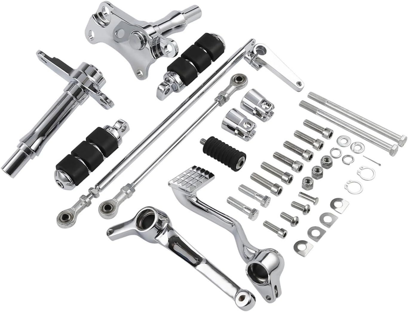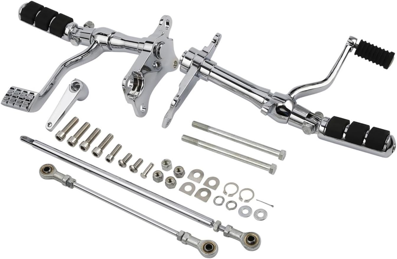 Please Ensure Your Motorcycle is in the our compatibility.Description:Aftermarket Complete assemblies Compatible with both brake and shifter sides.Made by Accessories Custom CruisersThese forward controls move your feet approximately 12" (30cm) forwardComplete assemblies Compatible with both brake and shifter sides. Kit includes pegs, shifter peg, linkages and hardware(As the Picture Shown).Mounts easily ,You do not need to purchase anything else, just bolt them on. These controls will not work on cycles with an engine guard, 2-in-1 exhaust or crash bars.Fitment :Compatible with Harley Sportster XL883 XL1200 1991-2003May you have a pleasant shopping experience and good luck all the time.