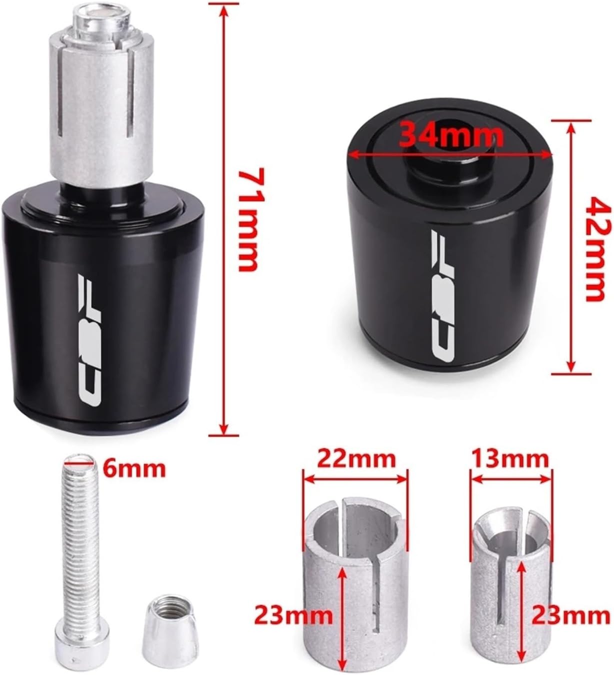 Dear friend, thank you for visiting my store. If you have any questions during the purchase process, Contact us,Thank you! Happy shopping!7/8"22MM Motorcycle Handlebar Grips Bar End Cap Plug For HO&ND&A CBF125 150 250 500 600 S 1000 CBF500 CBF600 CBF1000Material: CNC AluminumColors : Black / Golden / Green / Blue / Silver / Red / GreyFor HO&ND&A CBF125 150 250 500 600 S 1000 CBF500 CBF600 CBF1000 Balance: This motorcycle handlebar end plug can play the role of balancing both ends of the handlebar through its own weight, reduce the amplitude of the vibration of the handlebar, so that the rider can control the handlebar more stable.【Service Guarantee】If you have any installation and product problems after receiving the goods, you can contact us, we will handle the problem properly.