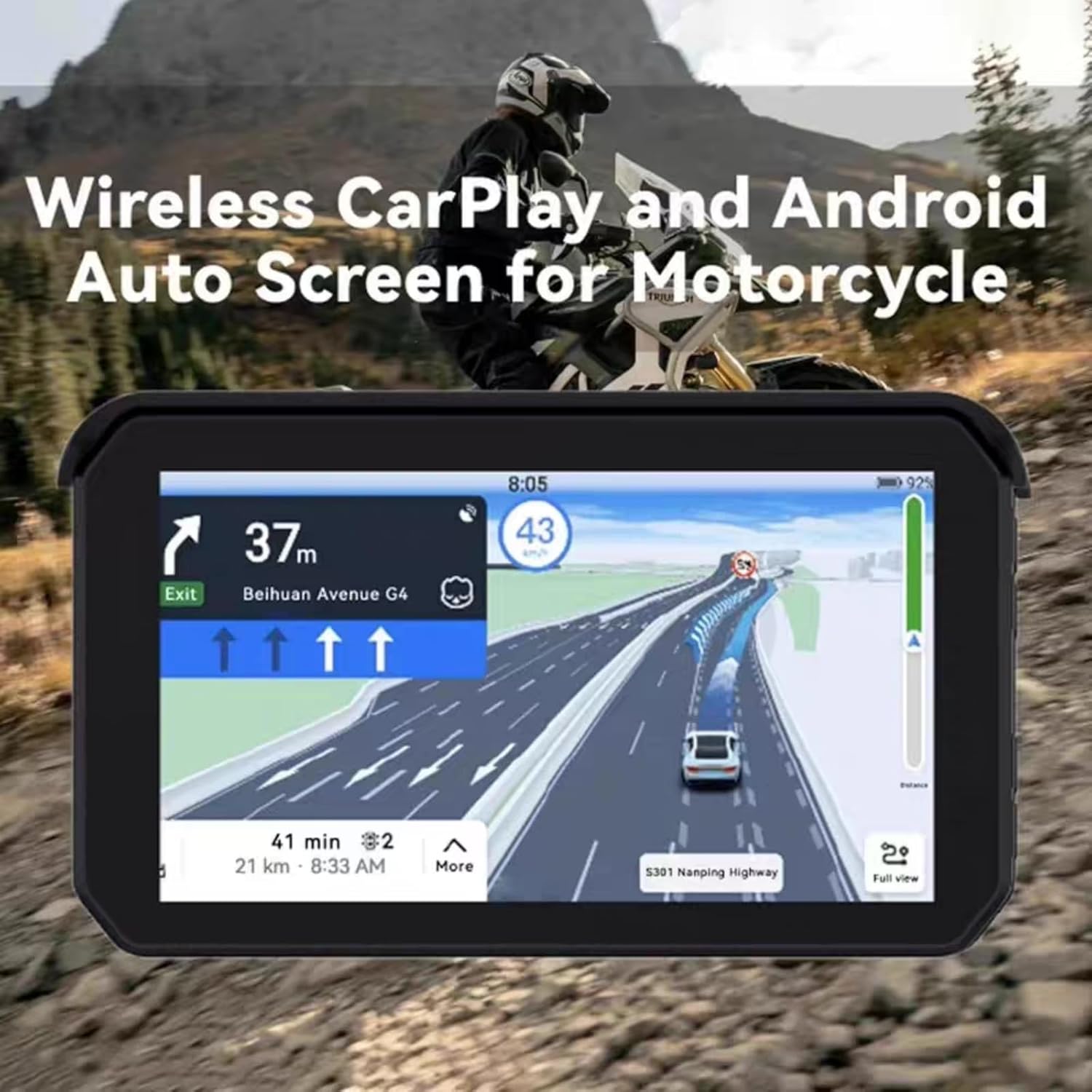 • 2️⃣ ​Seamless CarPlay & Android Auto Integration​ Connect instantly via Bluetooth for hands-free calls, music, maps (Google Maps/Waze), and voice commands (Siri/Google Assistant). No more fumbling with your phone while riding!