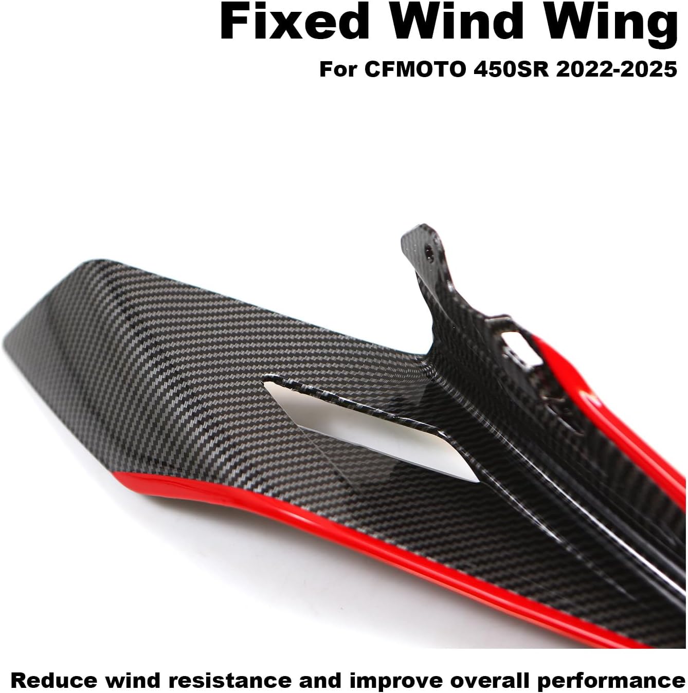 Please confirm the specific model before purchase, or contact our customer service for matching suggestions. Fixed wind wing compatible with CFMOTO 450SS (2022 - 2026) Fixed wind wing compatible with CFMOTO 450RSR (2022 - 2026) Fixed wind wing compatible with CFMOTO 450SR (2022 - 2026) - Premium Material: Constructed with high-quality ABS plastic, featuring exceptional toughness and wear resistance to withstand daily riding abrasions and harsh weather conditions. - Sleek Aesthetics: Boasts a stylish and sporty appearance, enhancing the overall visual appeal of your motorcycle while delivering practical functionality.