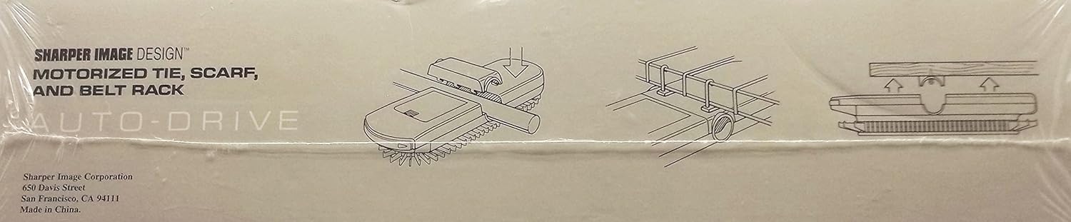 Model SM 605 Motorized tie, belt, and scarf caddy * Holds 72 ties, scarves or belts - ideal for both men and women. * Saves space while keeping accessories organized and easy to find. * A touch on the control bar gives a full rotation - No need to press continuously. * Convenient viewing light with delayed shut off. * Mounts on clothes rod, wire shelves, or under wood shelves. * Powered by 4 C batteries (not included).